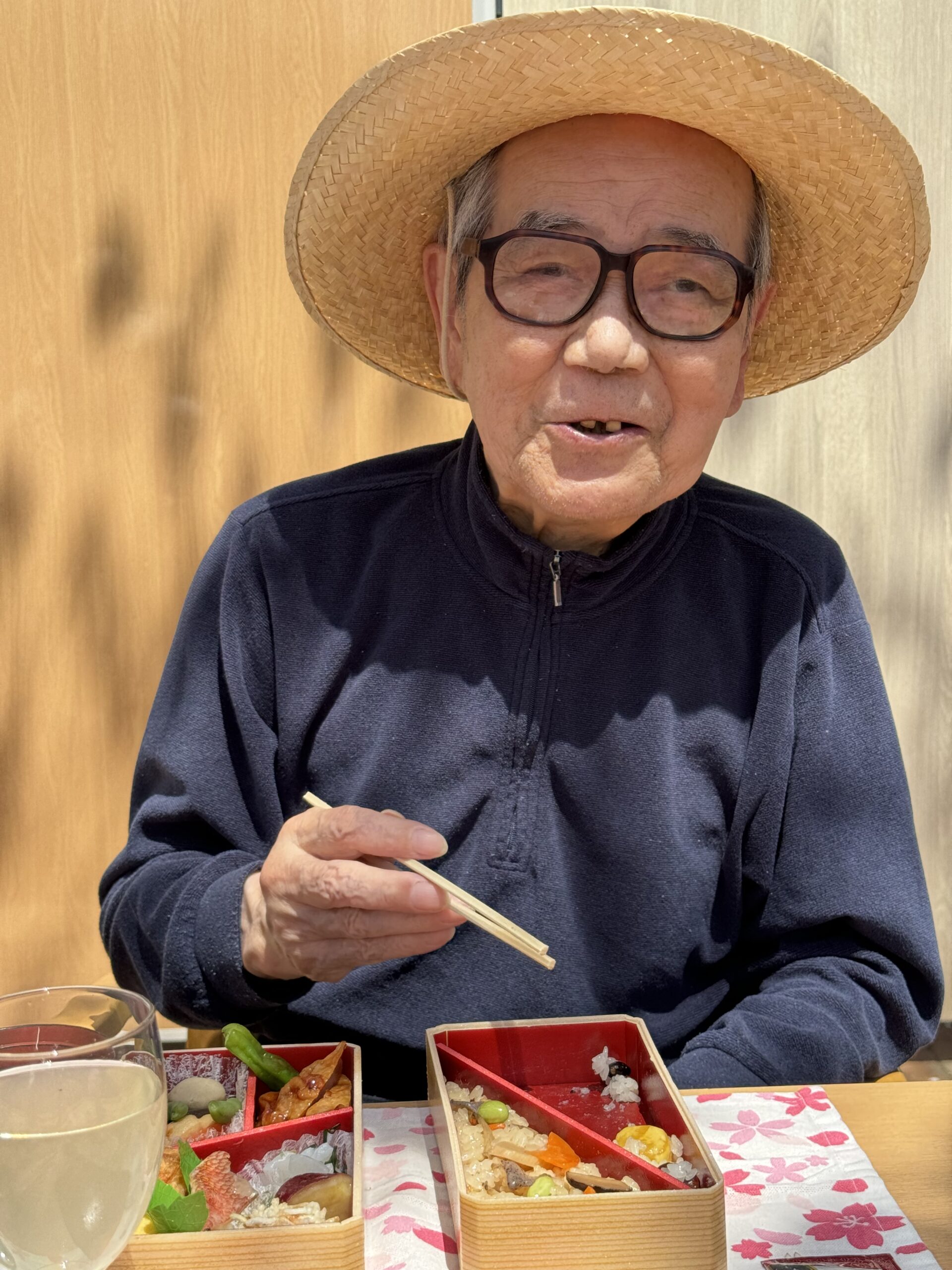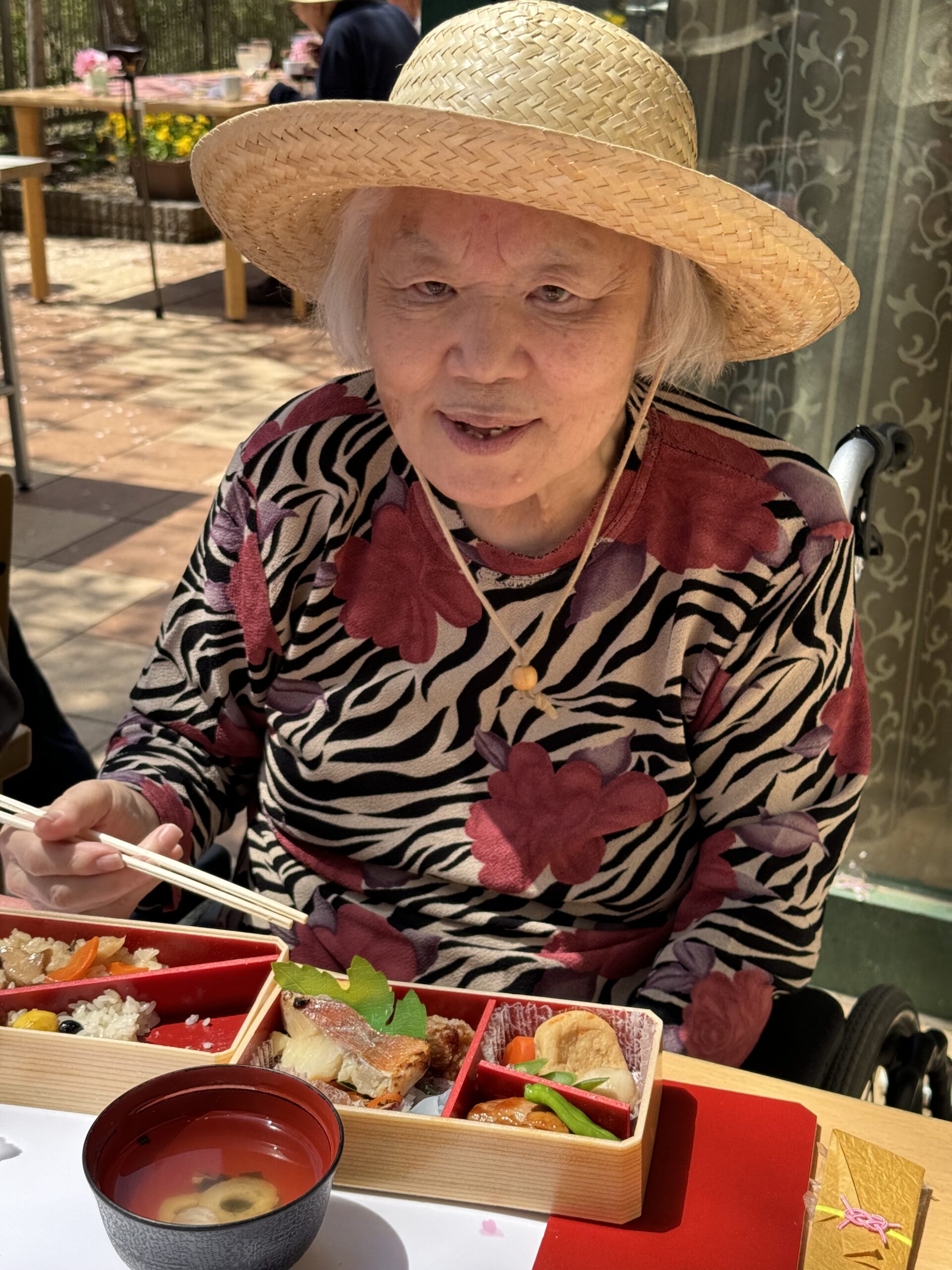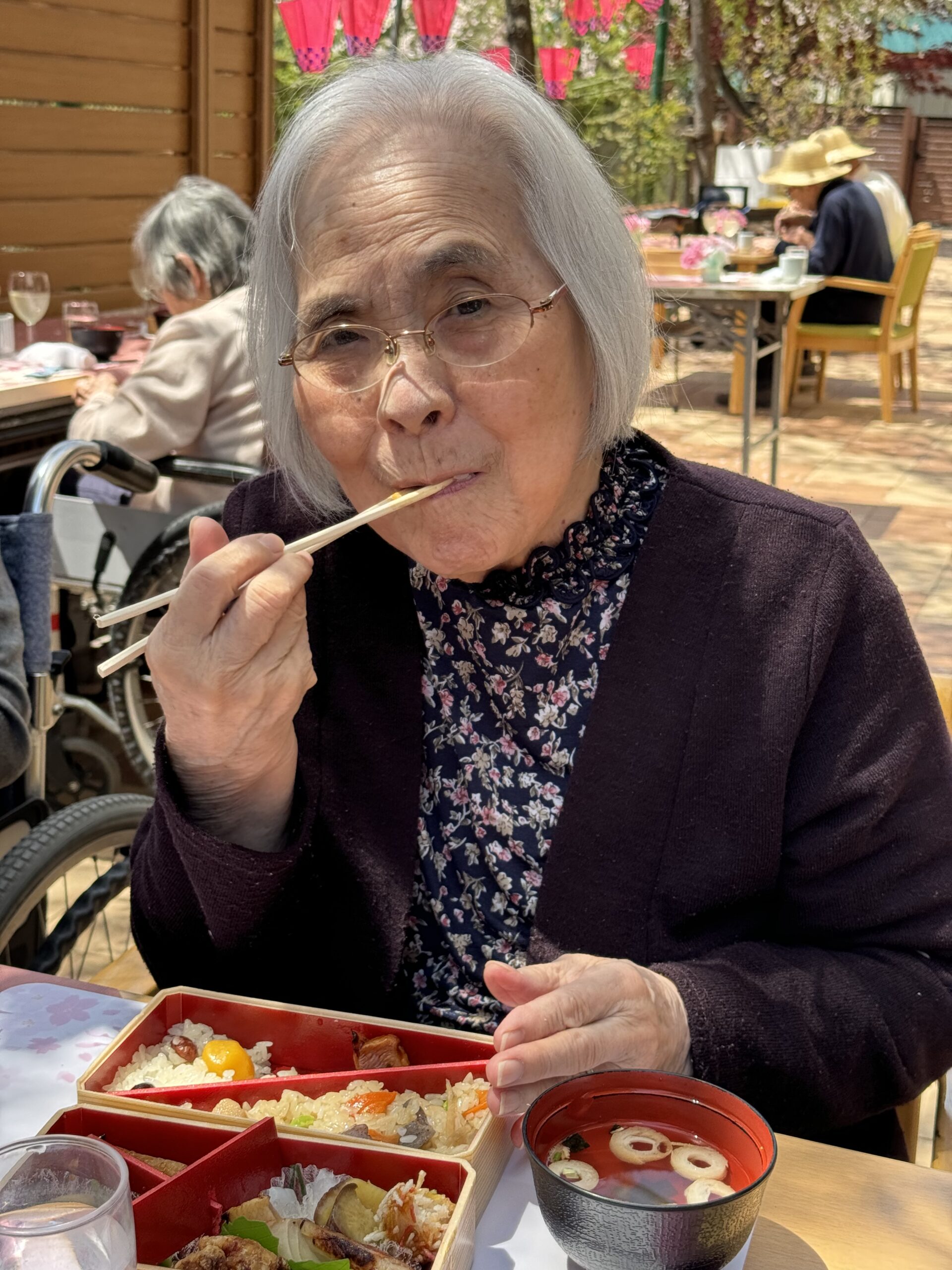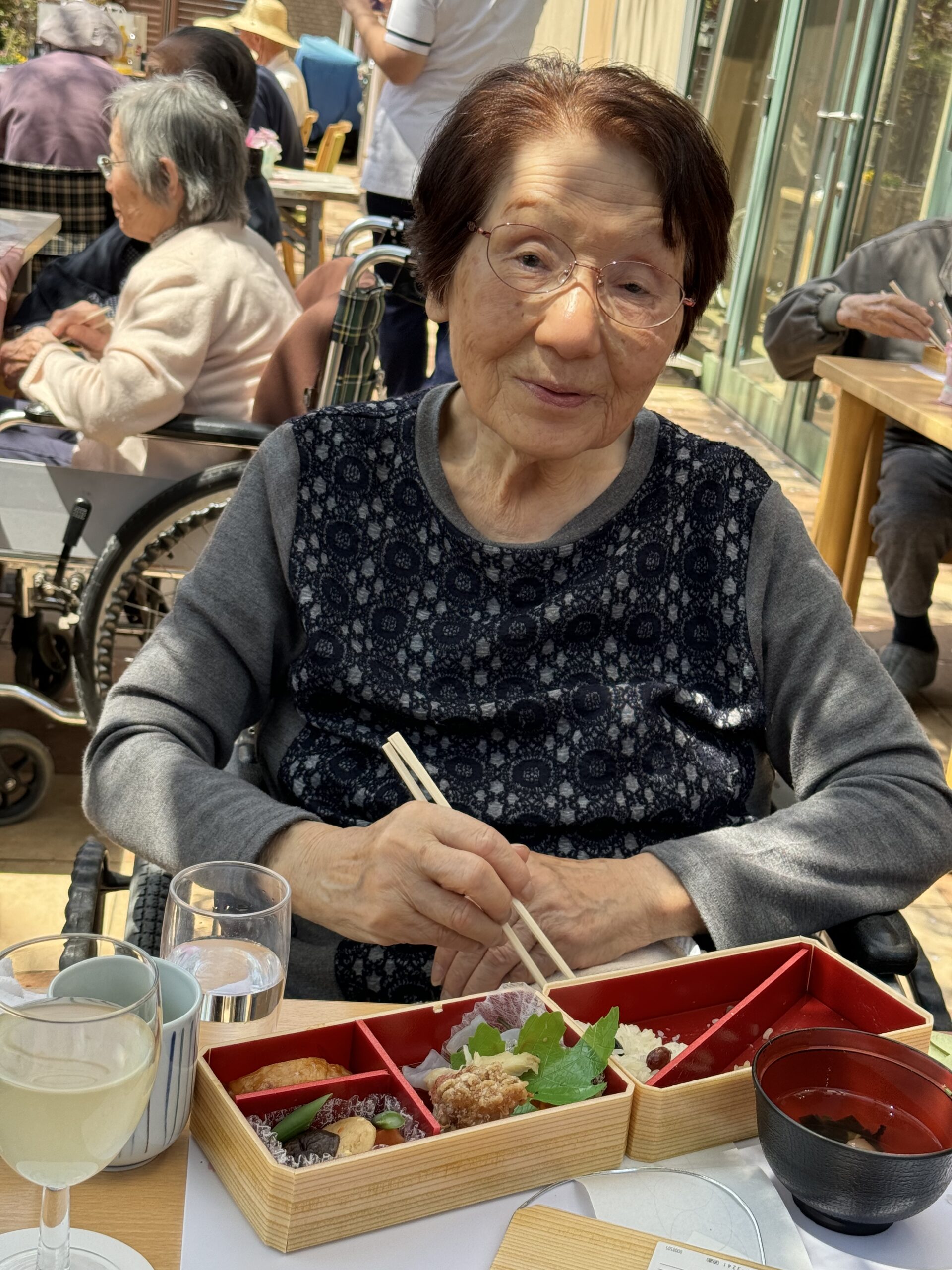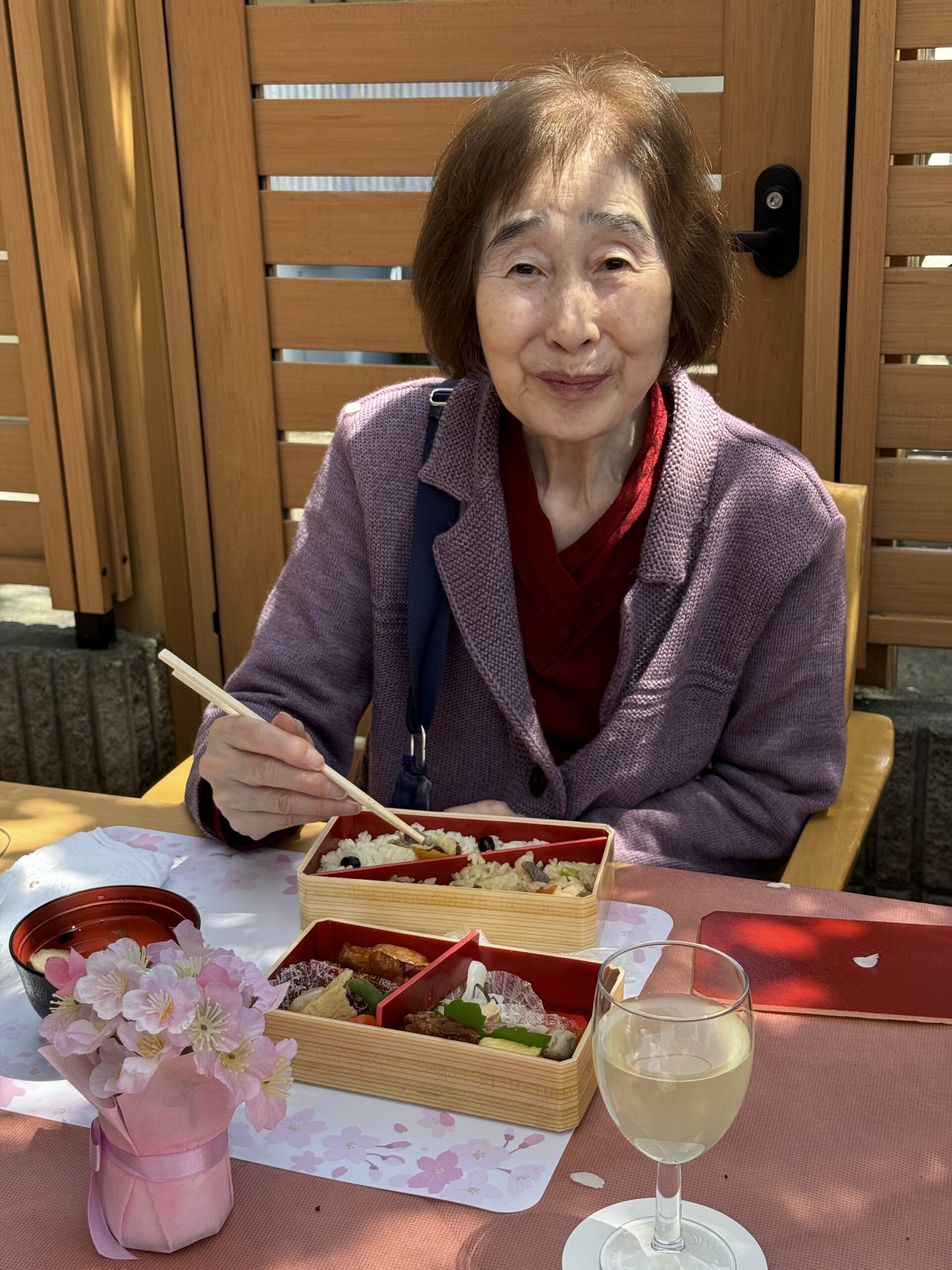 春らしい陽気の中、テラスで『たごさく』のお弁当を召し上がって頂きました(^^♪