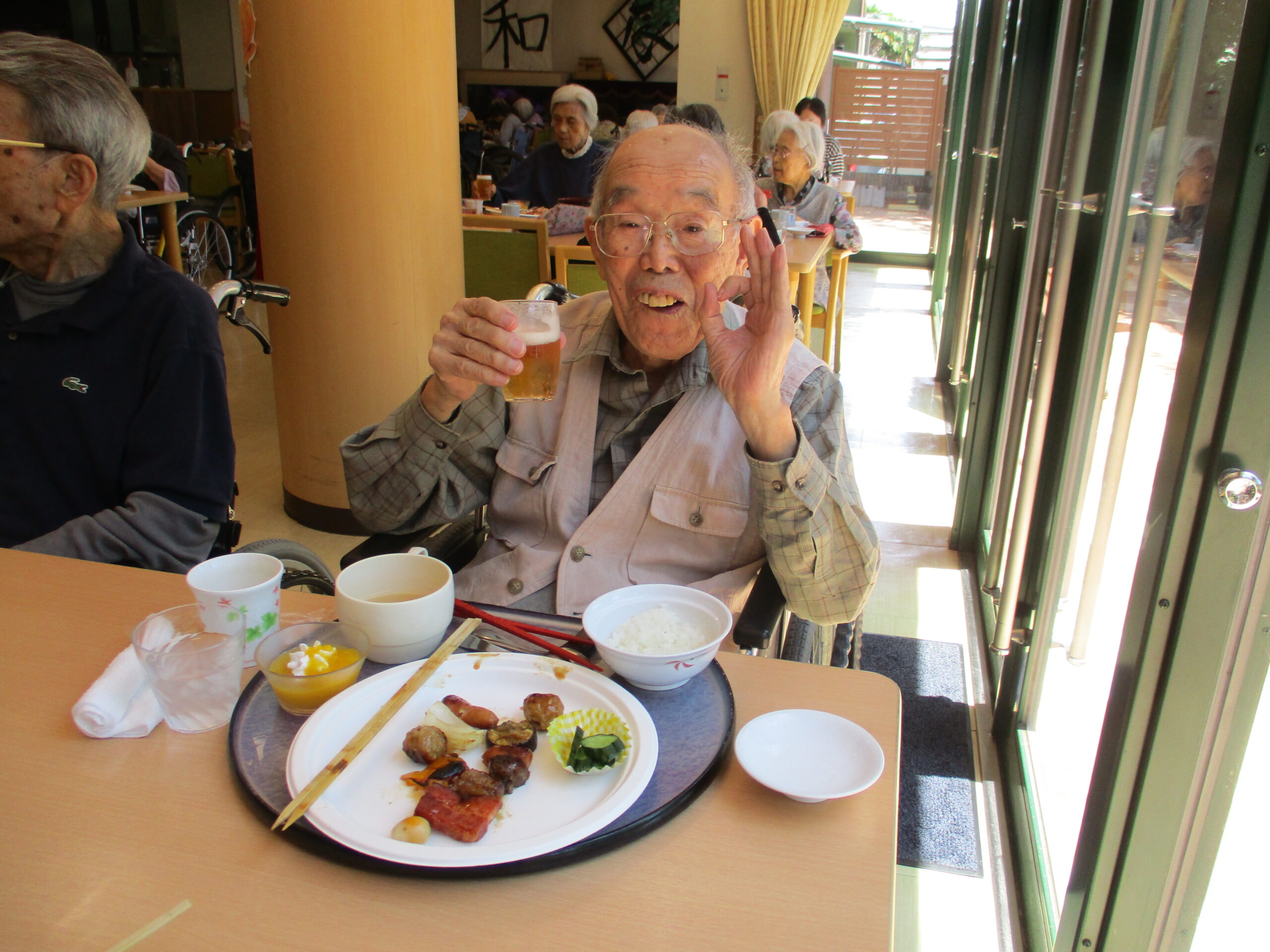 焼き台からのいい匂いが皆様のお部屋まで届いたようで、いつもより早く昼食の準備をされておりました♪