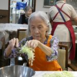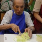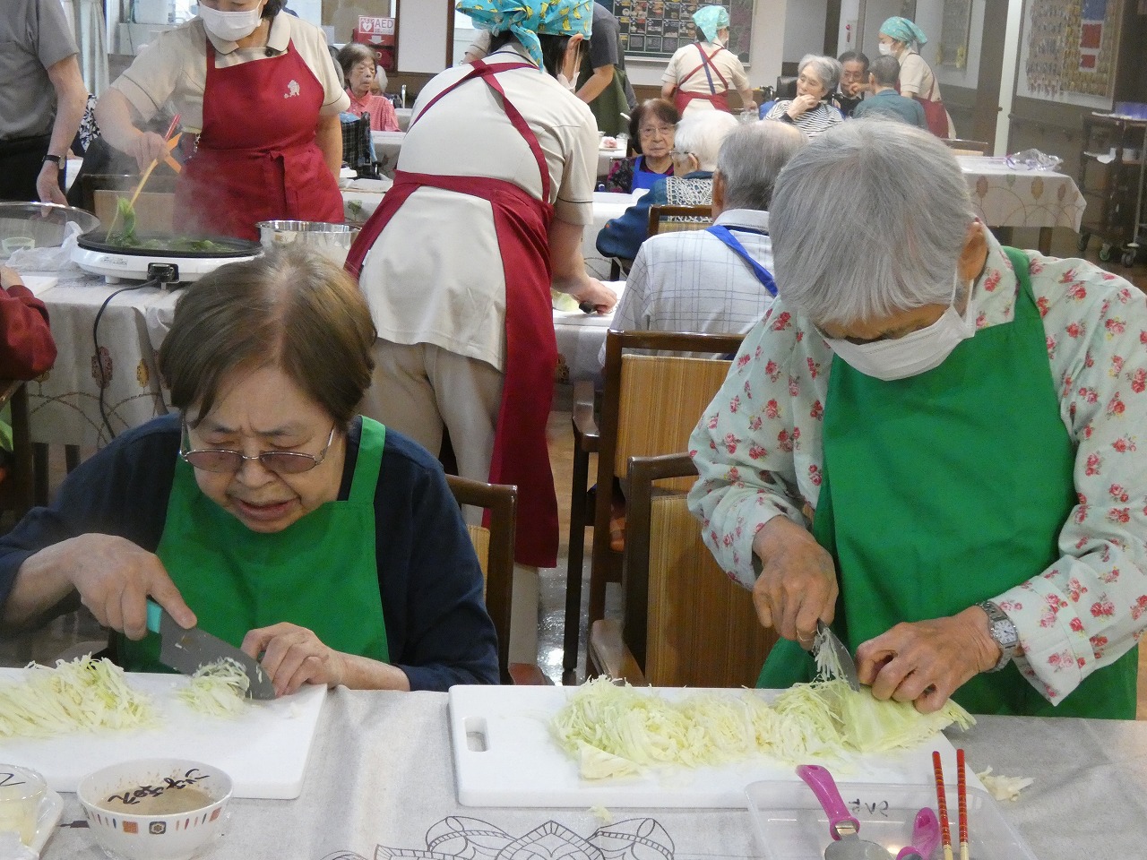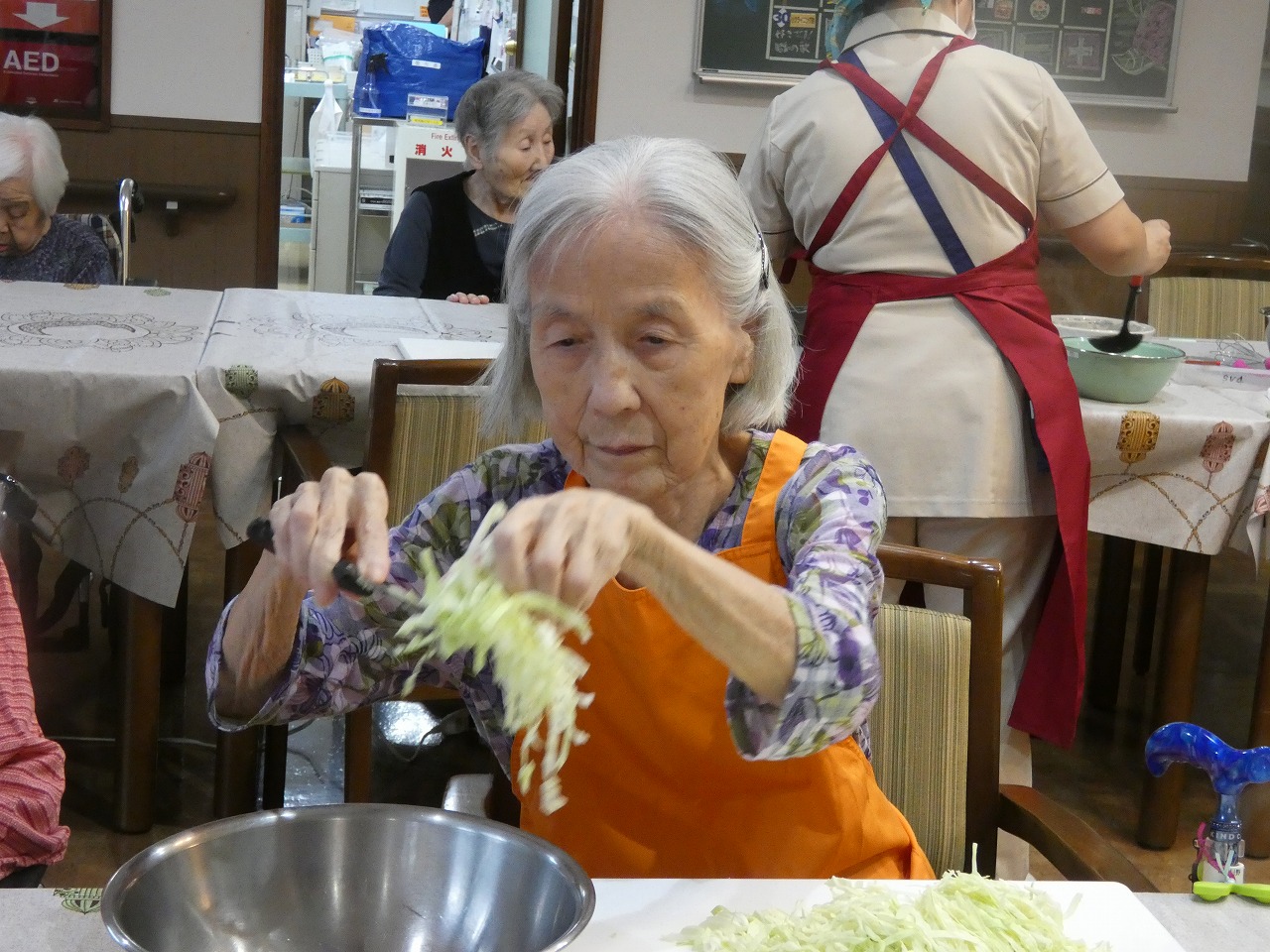 真剣な表情でキャベツを千切り(^-^;
