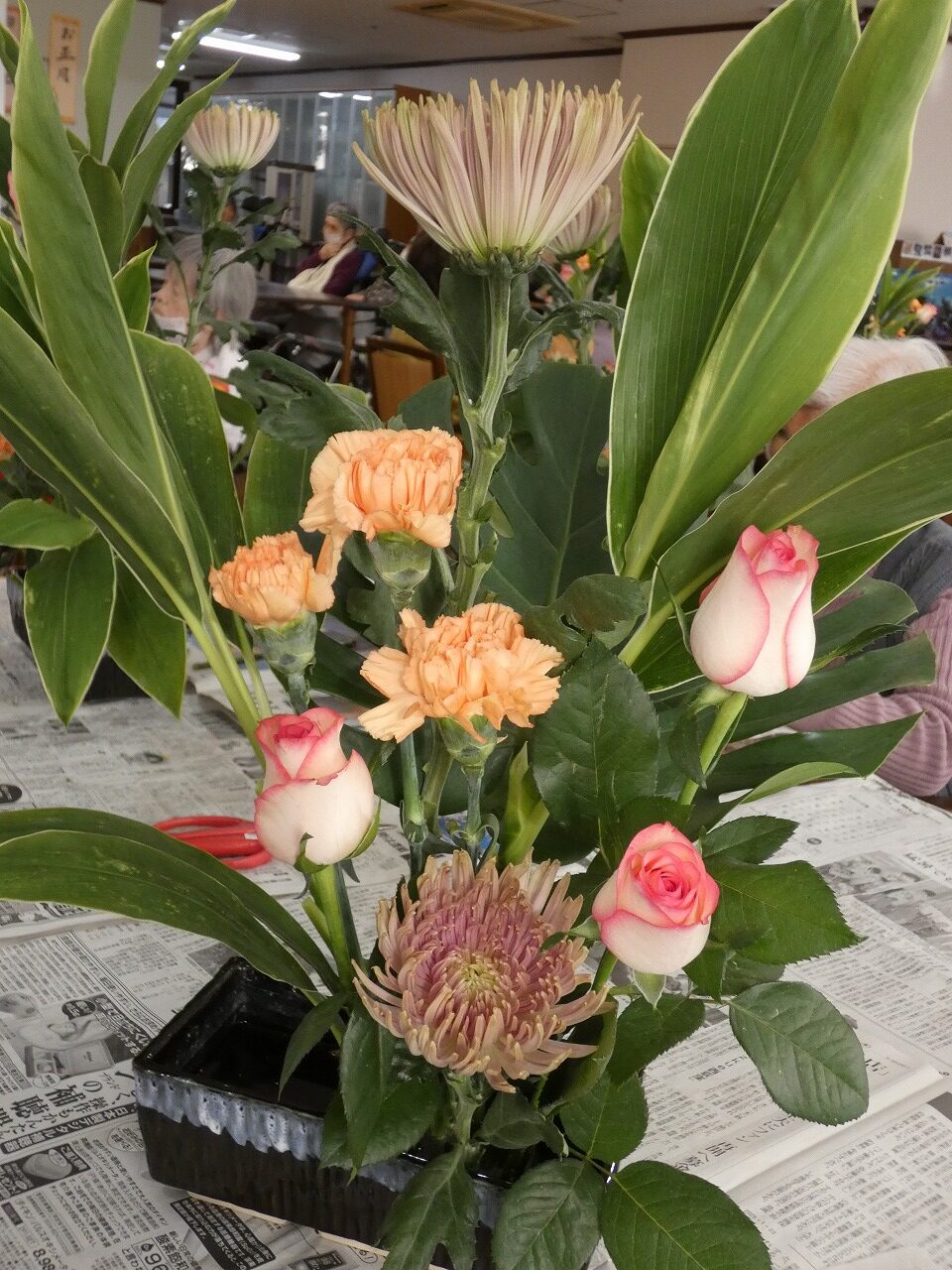 ・菊(ピンクベージュ)・バラ(白ピンクグラデーション)