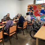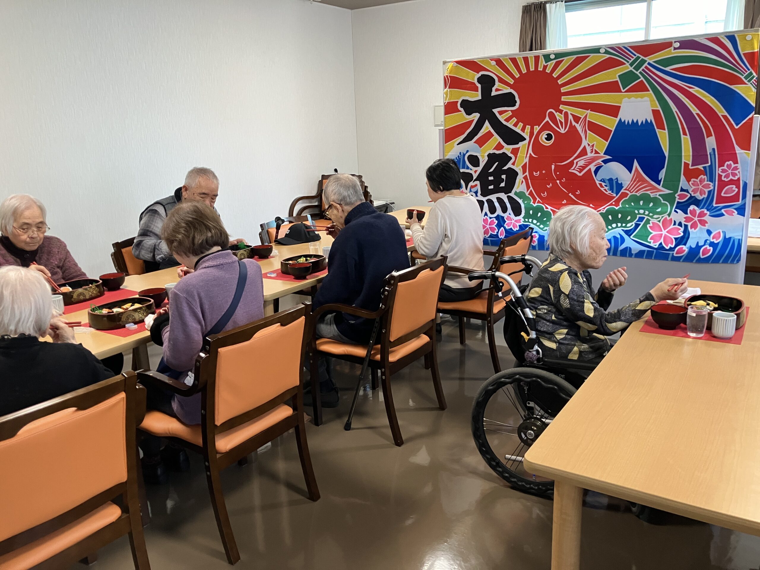 雰囲気を出すために大漁旗を飾り、リラックスできるBGMも流しました♪