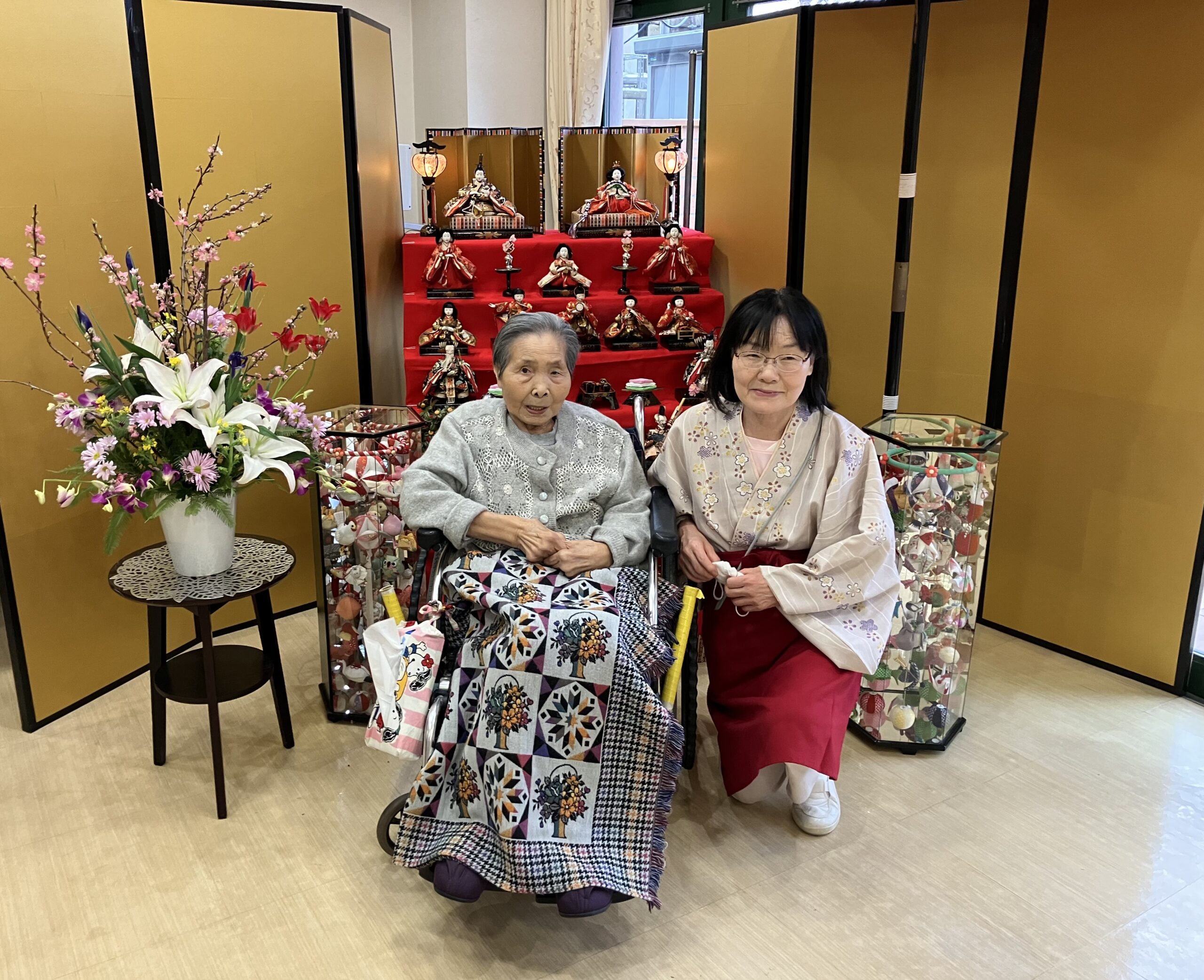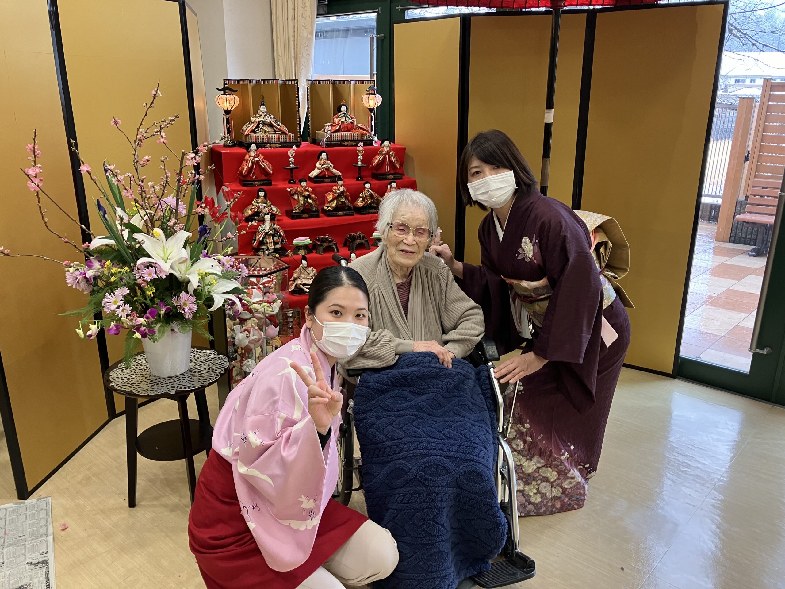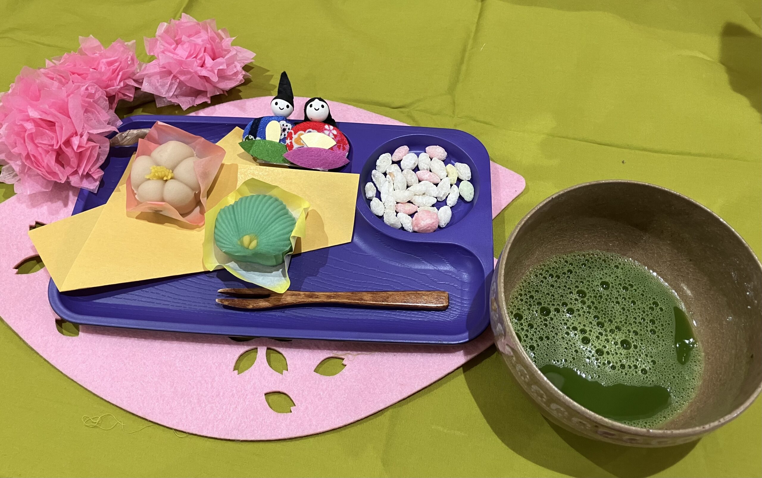 昼食に、(・海鮮桜ご飯茶巾包み・はまぐりの御吸物・四種の天ぷら盛り合わせ・茶碗蒸し・抹茶とイチゴの二色ムース)を提供いたしました。皆様とても喜ばれ「こんなご馳走頂いちゃっていいのかしら?!」と嬉しそうに召し上がれておりました♪午後はボランティアによる日本舞踊を披露して頂きました。おやつには練り切りとお抹茶を提供致しました!外には雪がちらつき「こんな記憶に残るひな祭りは初めてだわと」仰られ、一日を楽しんで頂きました♪
