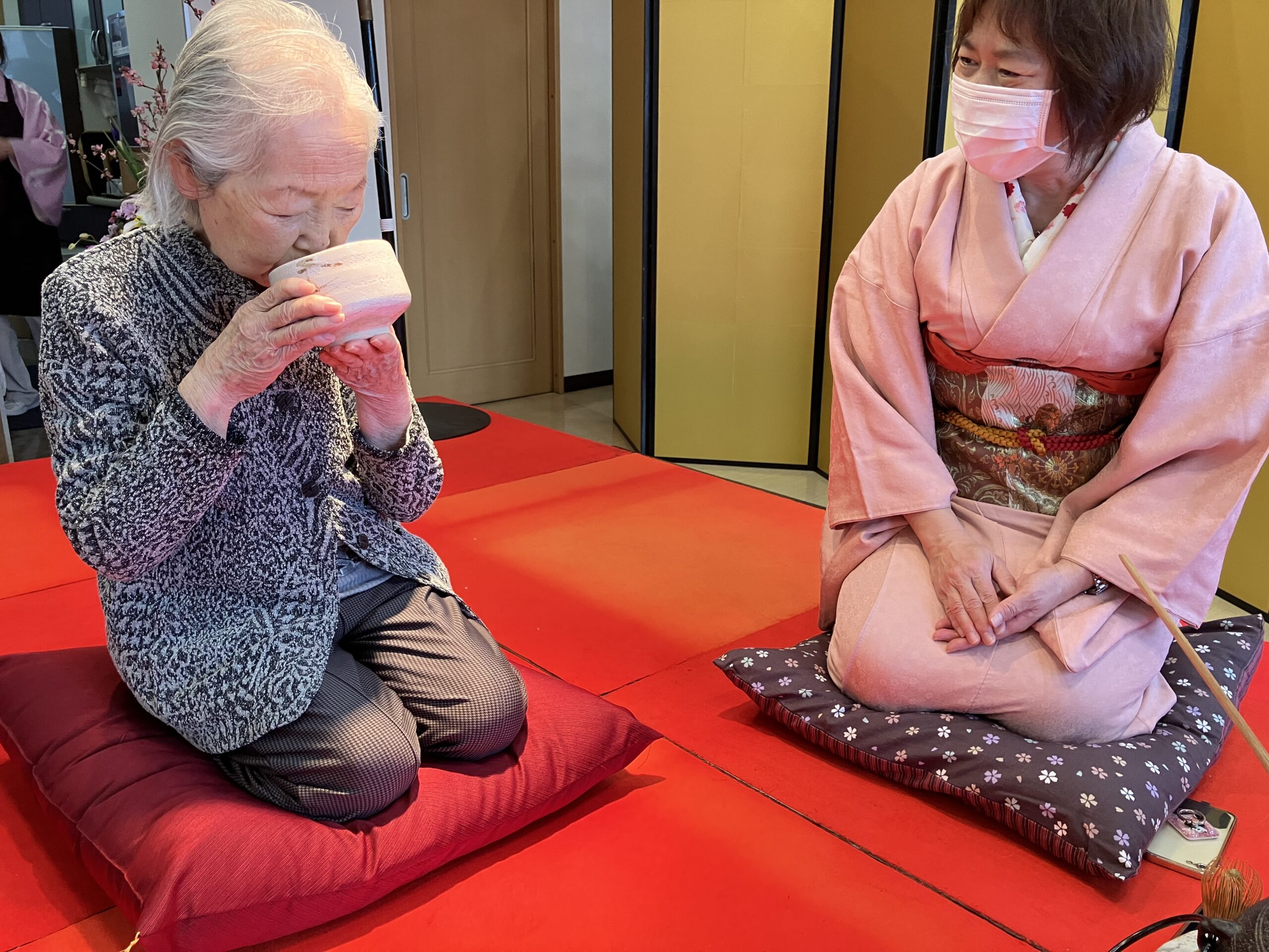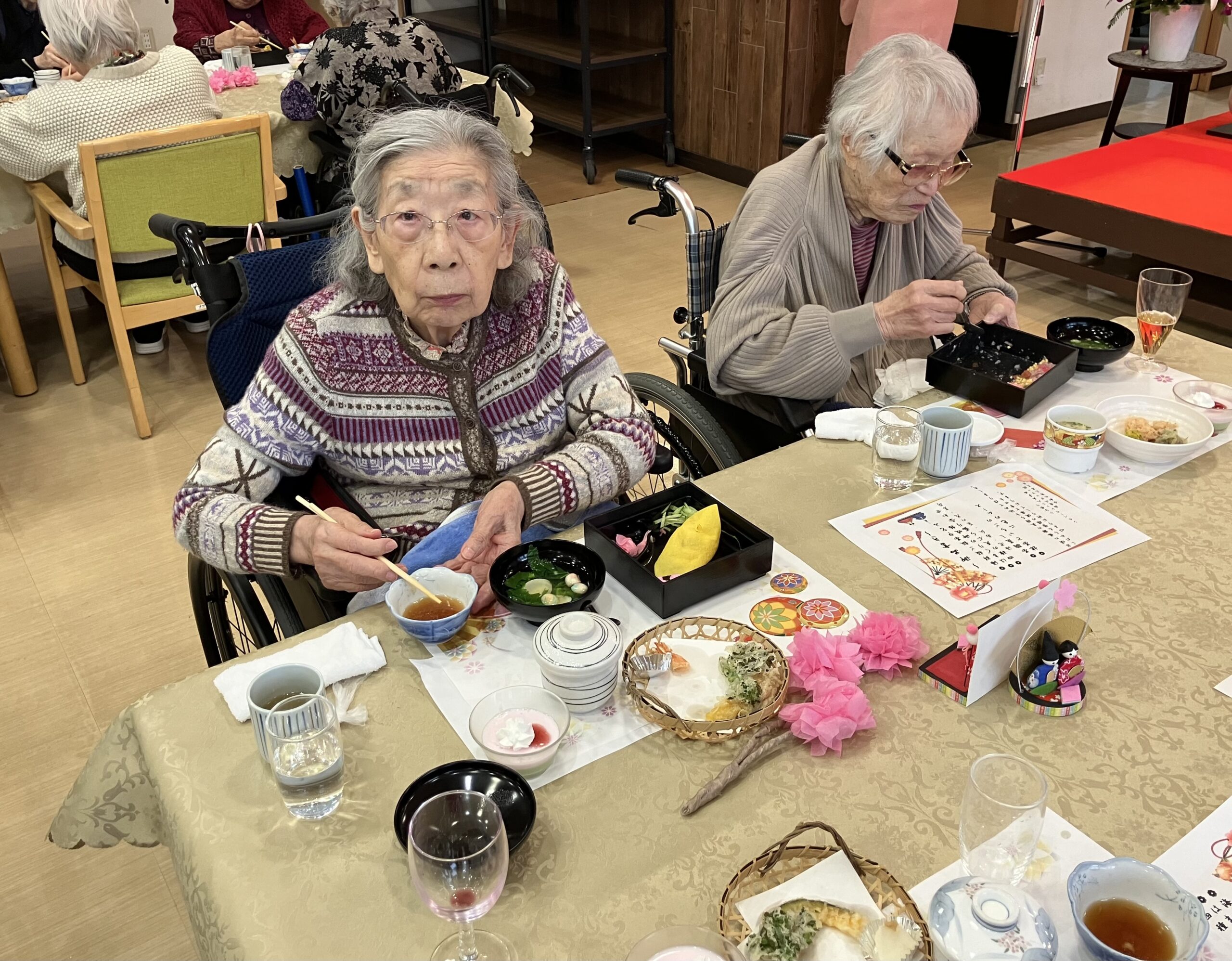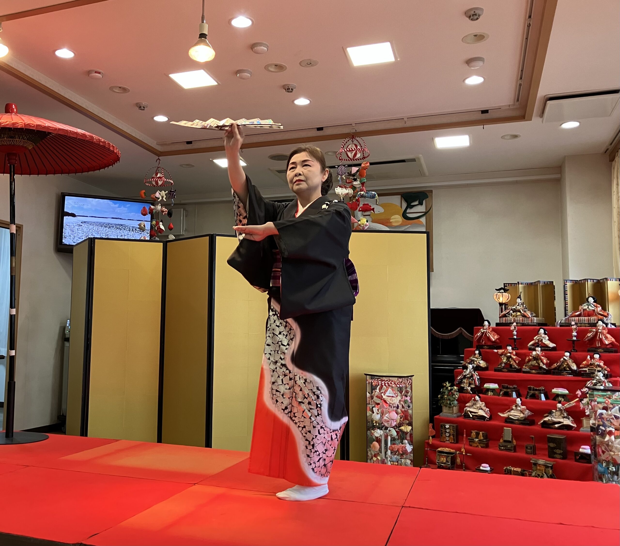 昼食に、(・海鮮桜ご飯茶巾包み・はまぐりの御吸物・四種の天ぷら盛り合わせ・茶碗蒸し・抹茶とイチゴの二色ムース)を提供いたしました。皆様とても喜ばれ「こんなご馳走頂いちゃっていいのかしら?!」と嬉しそうに召し上がれておりました♪午後はボランティアによる日本舞踊を披露して頂きました。おやつには練り切りとお抹茶を提供致しました!外には雪がちらつき「こんな記憶に残るひな祭りは初めてだわと」仰られ、一日を楽しんで頂きました♪