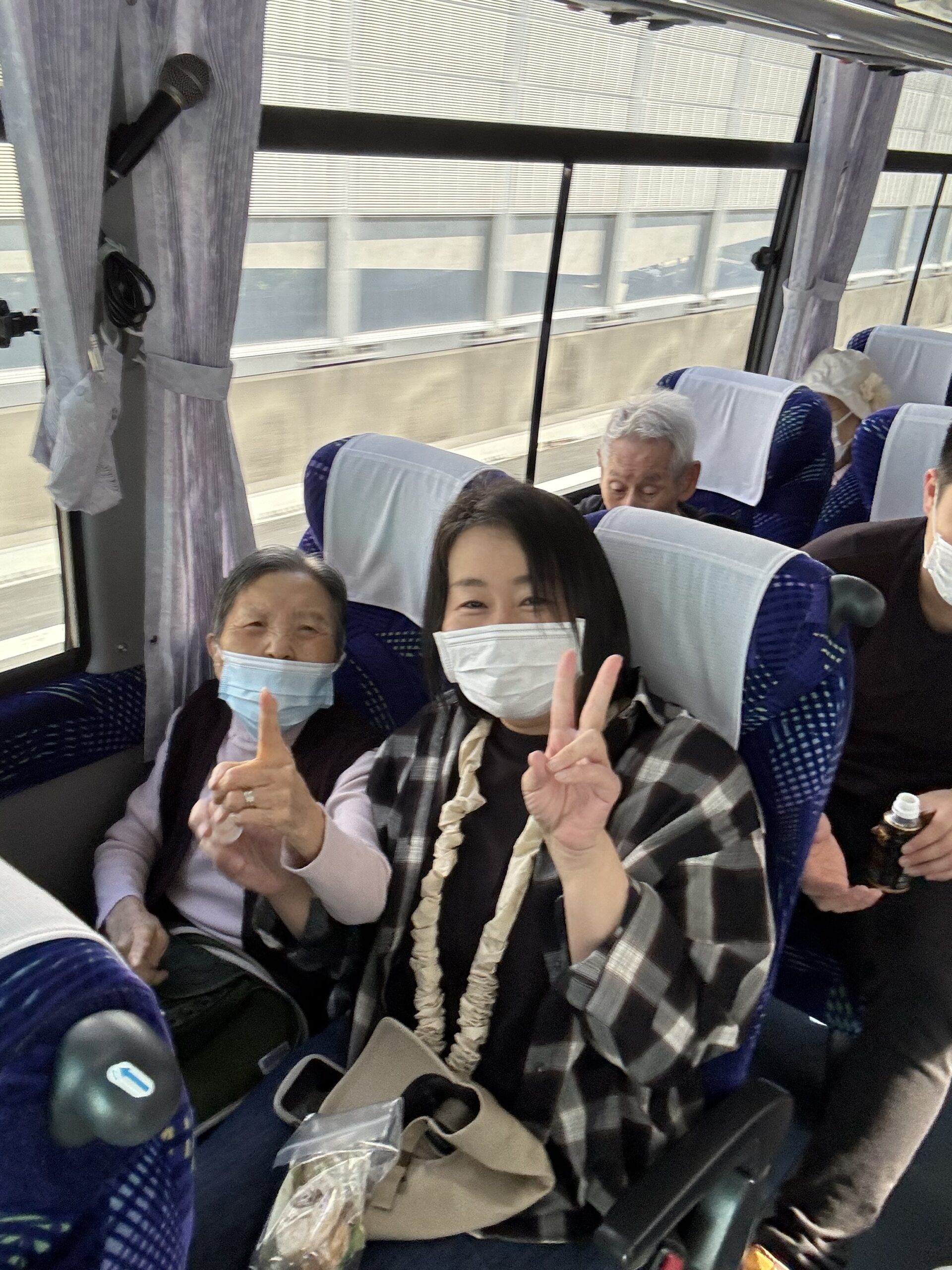 参加してくださったご入居者とバスに乗り、出発前から気分はルンルンです♪