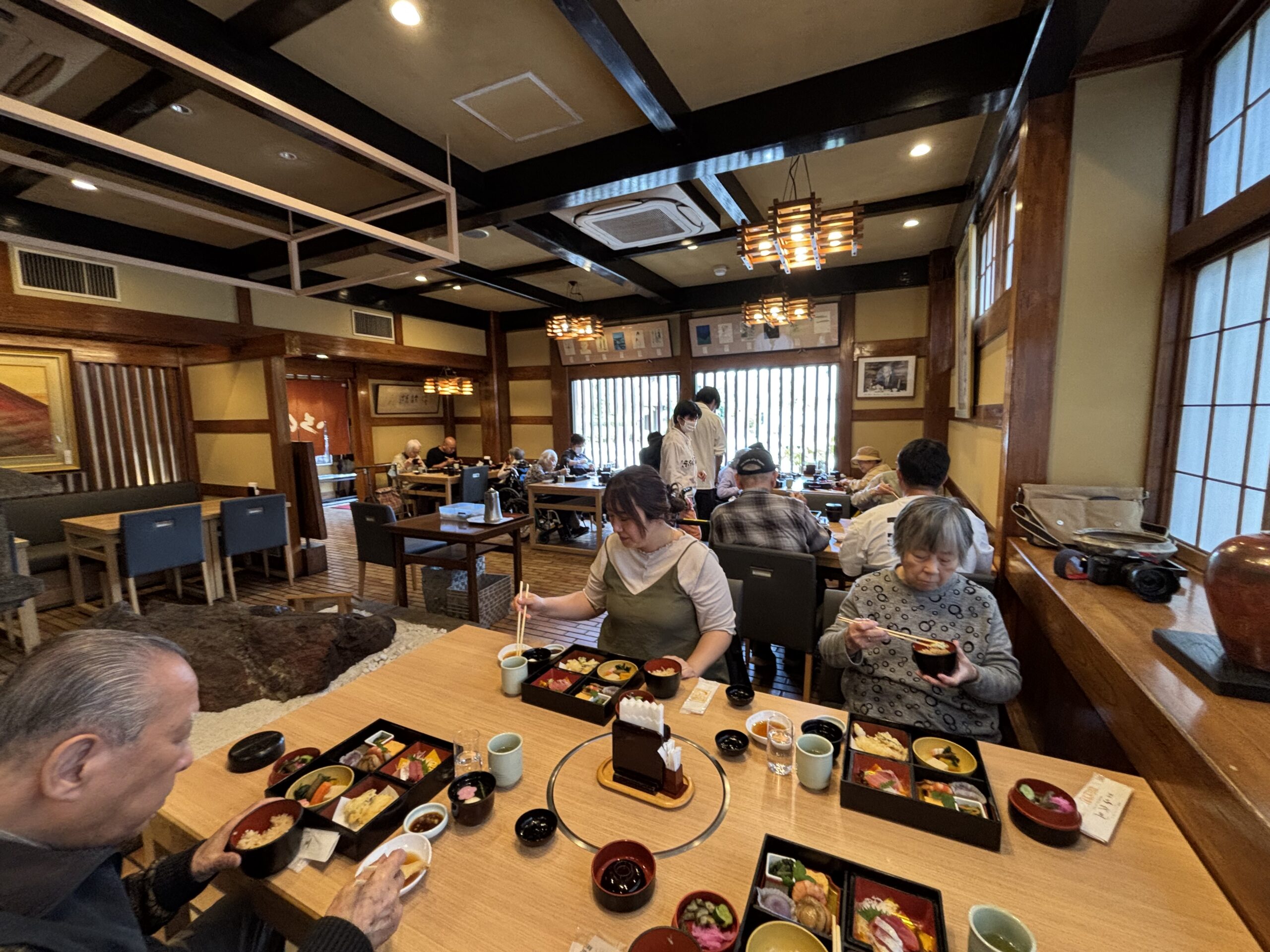 館内を散策したのち、江ノ島、江ノ電を横目にお食事処へ移動いたしました。