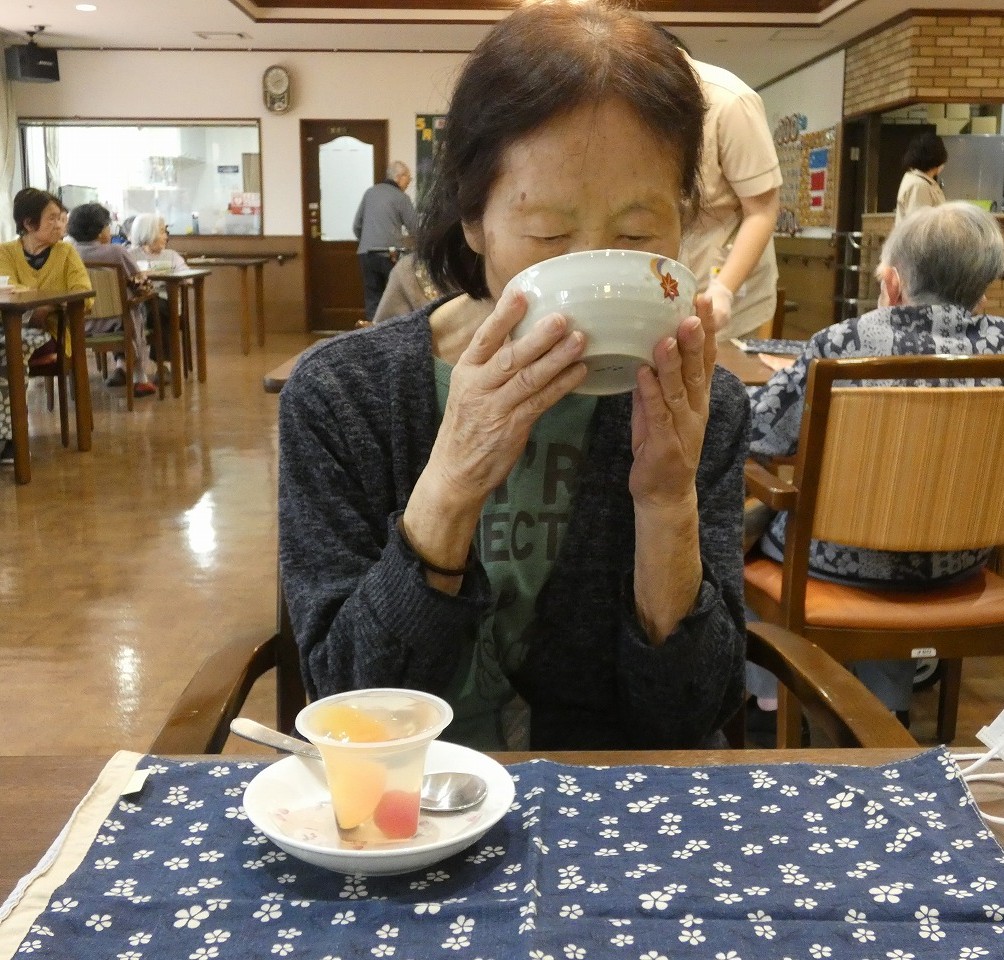 今月のお菓子は、梅くずきりとみつまめです(*^-^*)