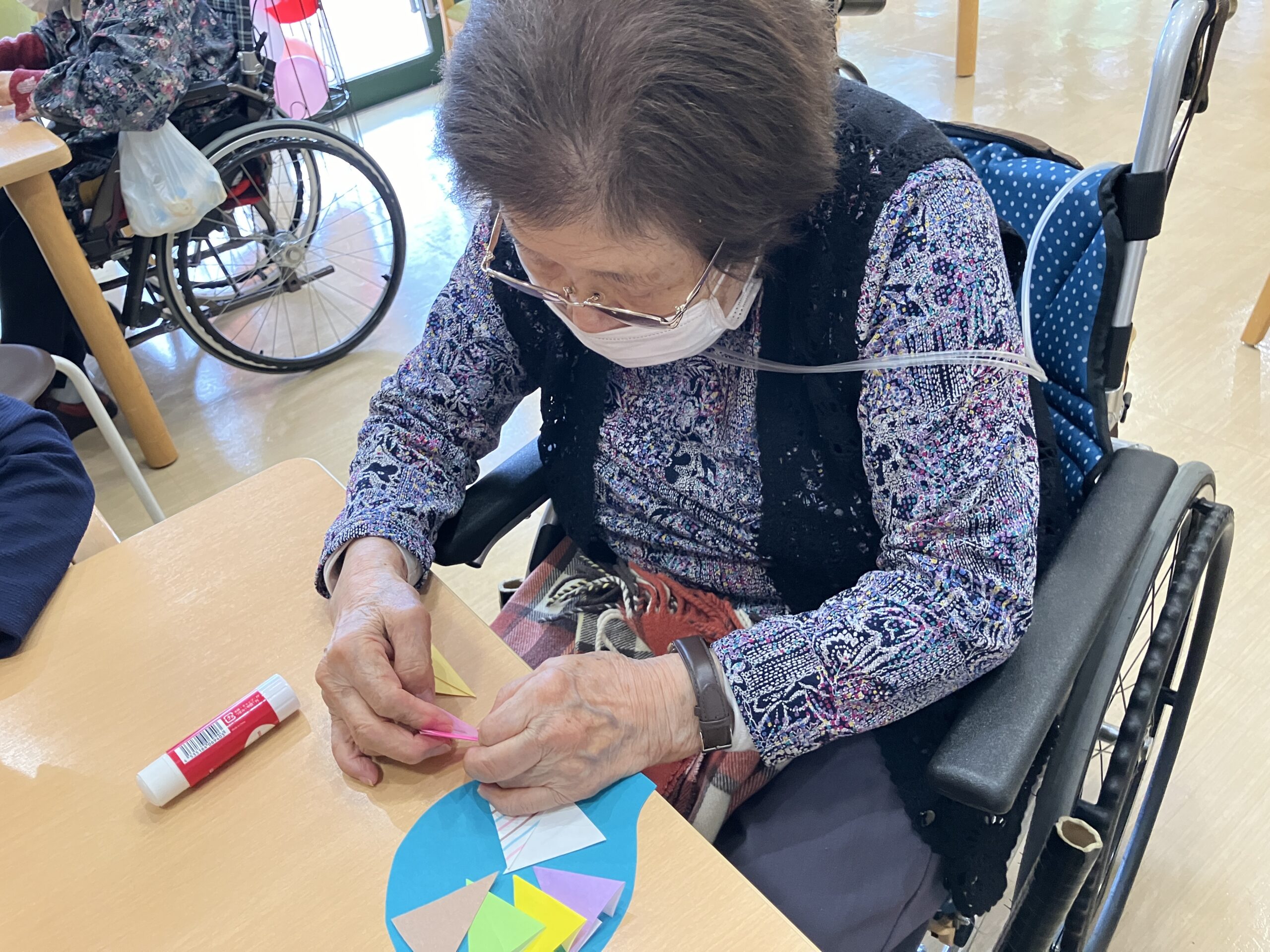 出来上がったものはリハビリ室に飾り、明るくなったね~素敵だね~と好評です(^^♪