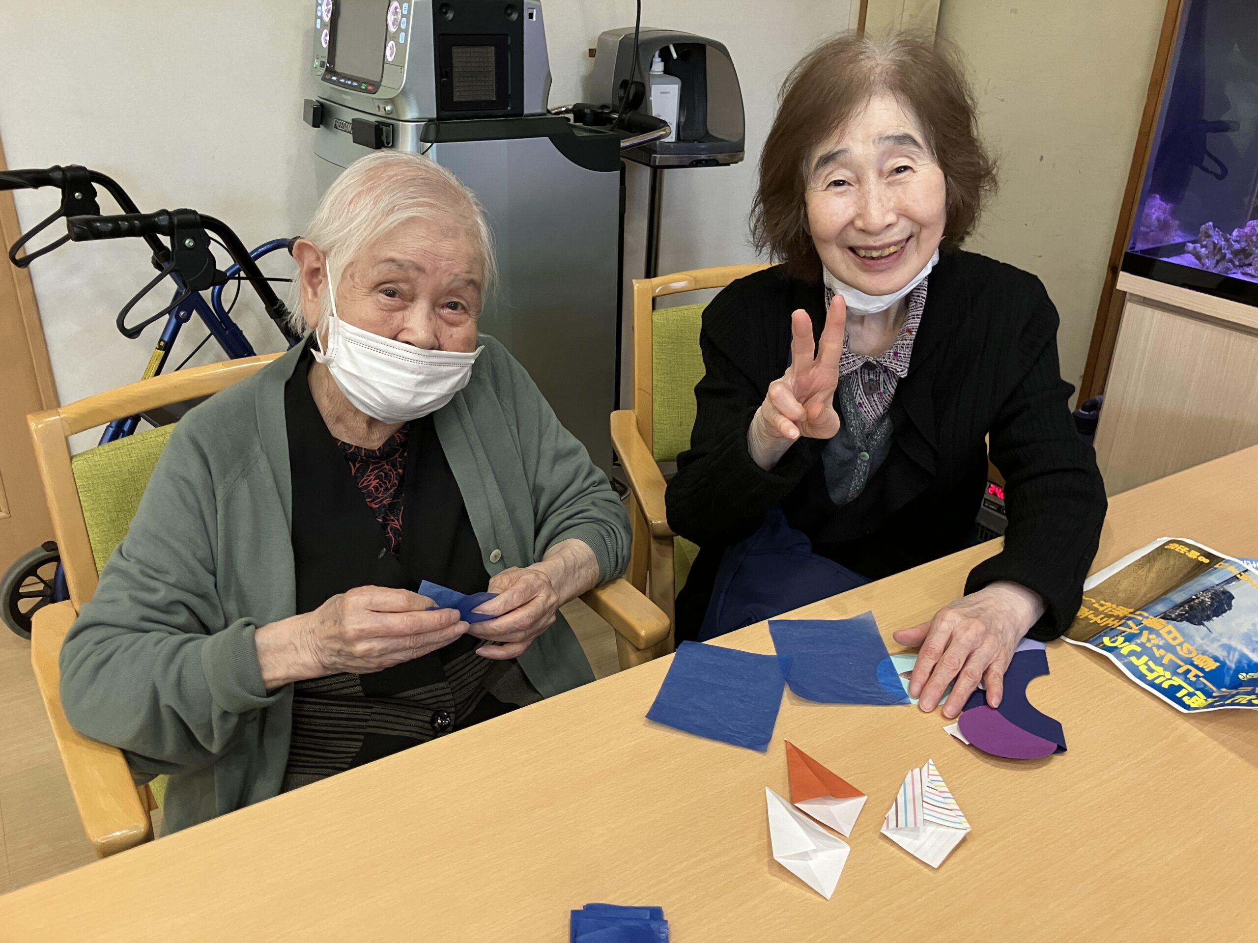 気球は折り紙を切る・折る・貼るを分担し皆様に取り組んでいただきました(^^)/