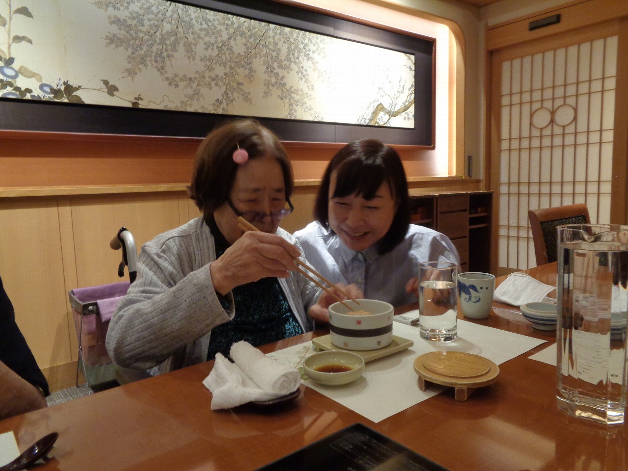お料理は、湯葉や豆腐の懐石料理で、「こんなの初めて食べた」「おいしいね!」と、とても好評でした。会話も弾み、皆様に喜んでいただけて良かったです。