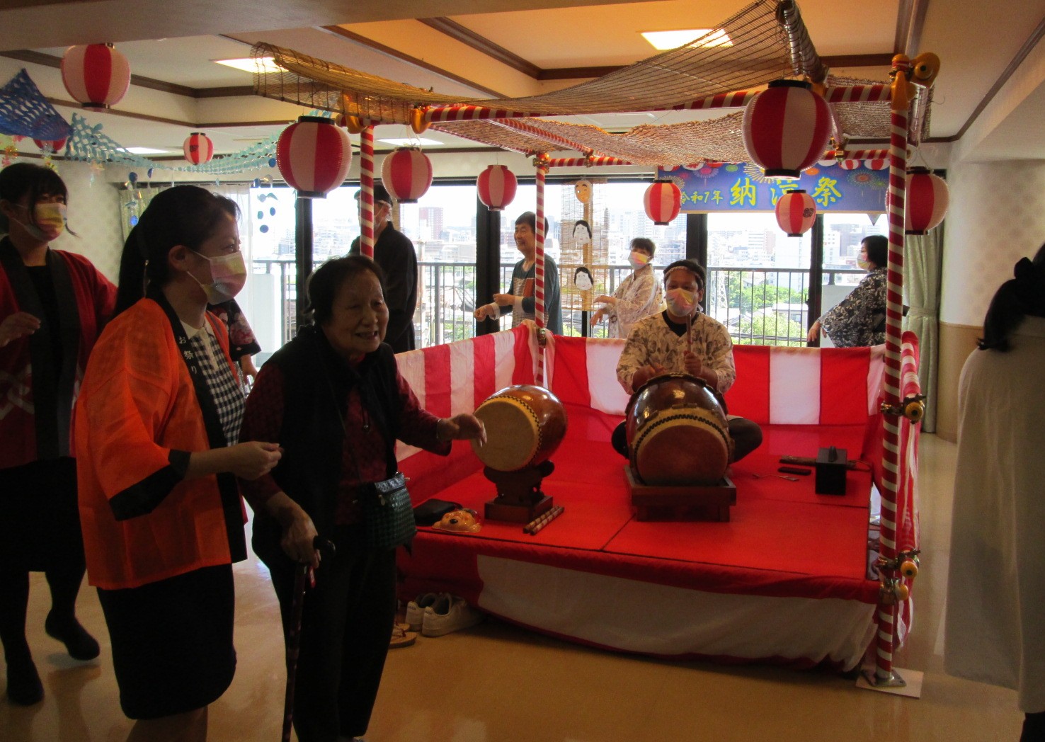 太鼓もたたいて下さるご入居者もいらっしゃり、とても盛り上がりました。