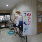 トレードマークの白いランニング姿で自転車に乗って登場です(*^-^*)
