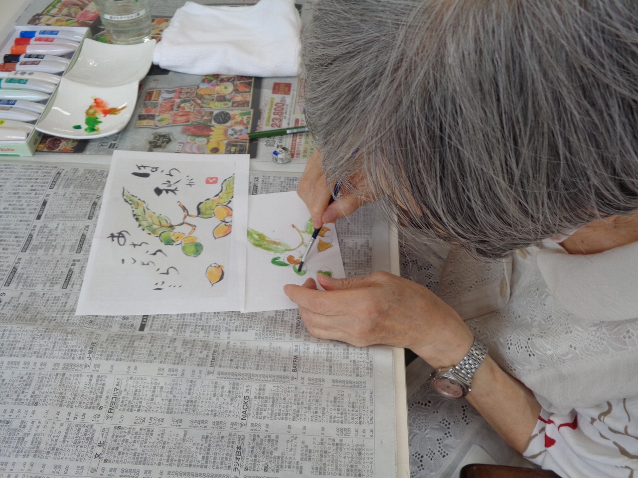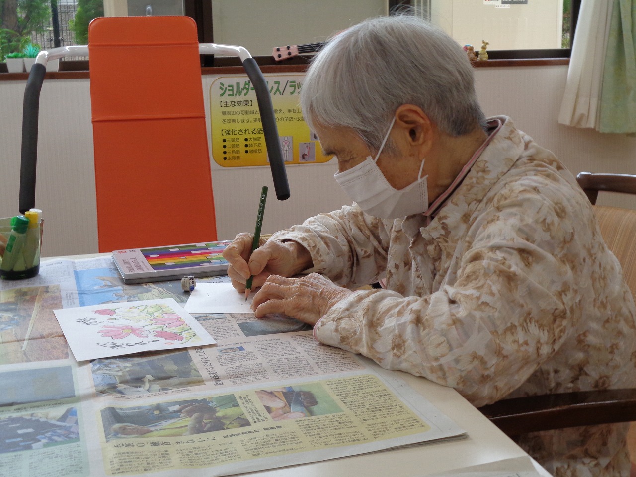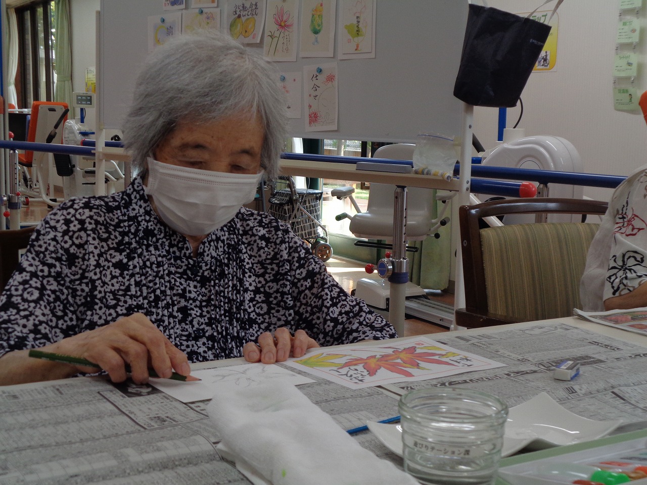 9月8日(月)本日は絵手紙クラブです♬ご入居されて間もない方が初参加してくださいました。お誘いする時に、絵手紙をしてくださる方だろうか…と悩みましたが、声を掛けてみると「絵を描くのは好きだ、やってみるか」と仰ってくださいました!当たり前ですが、ご入居された方がどんなご趣味なのか、どういった事が好きなのか、分かりません。ですが、こうやって少しずつ知れることがとても嬉しいです!クラブ活動などを通して、充実した時間を過ごしていただけるように頑張ります!