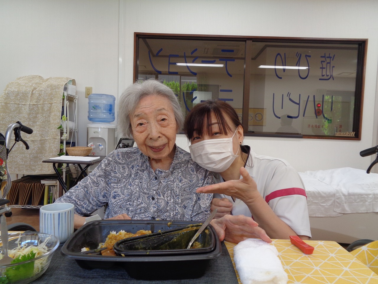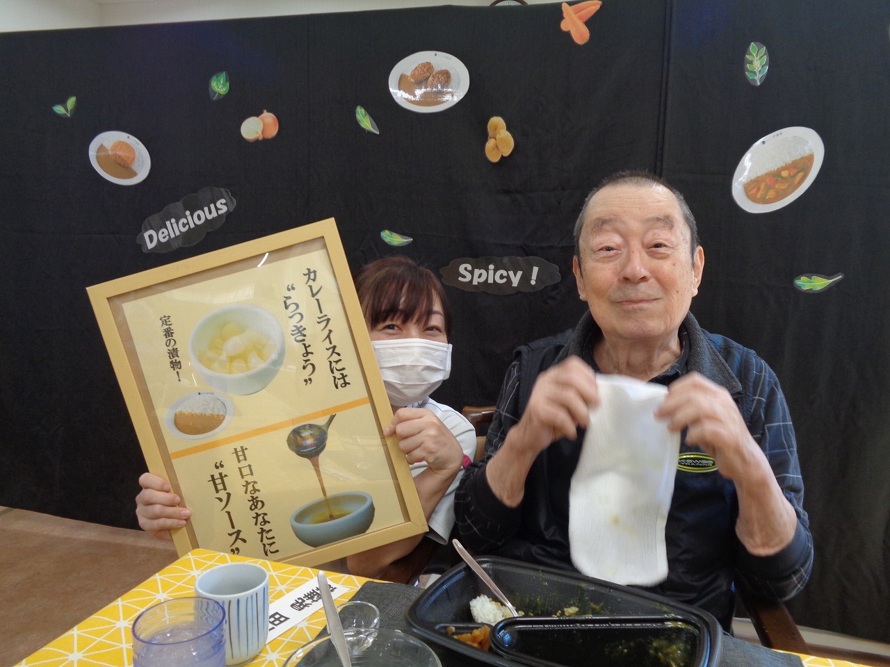 本日は日野リハビリ室にて昼食会を開催し、『CoCo壱番屋』のカレーライスをご用意!事前にメニューの中からお好きなカレーを選んでいただき、お召し上がりいただきました。「程よい辛さでいいですね」「おいしくて元気がでる!」と皆様ペロリと完食して下さいました。次回も、おいしいものをご用意してお待ちしております!