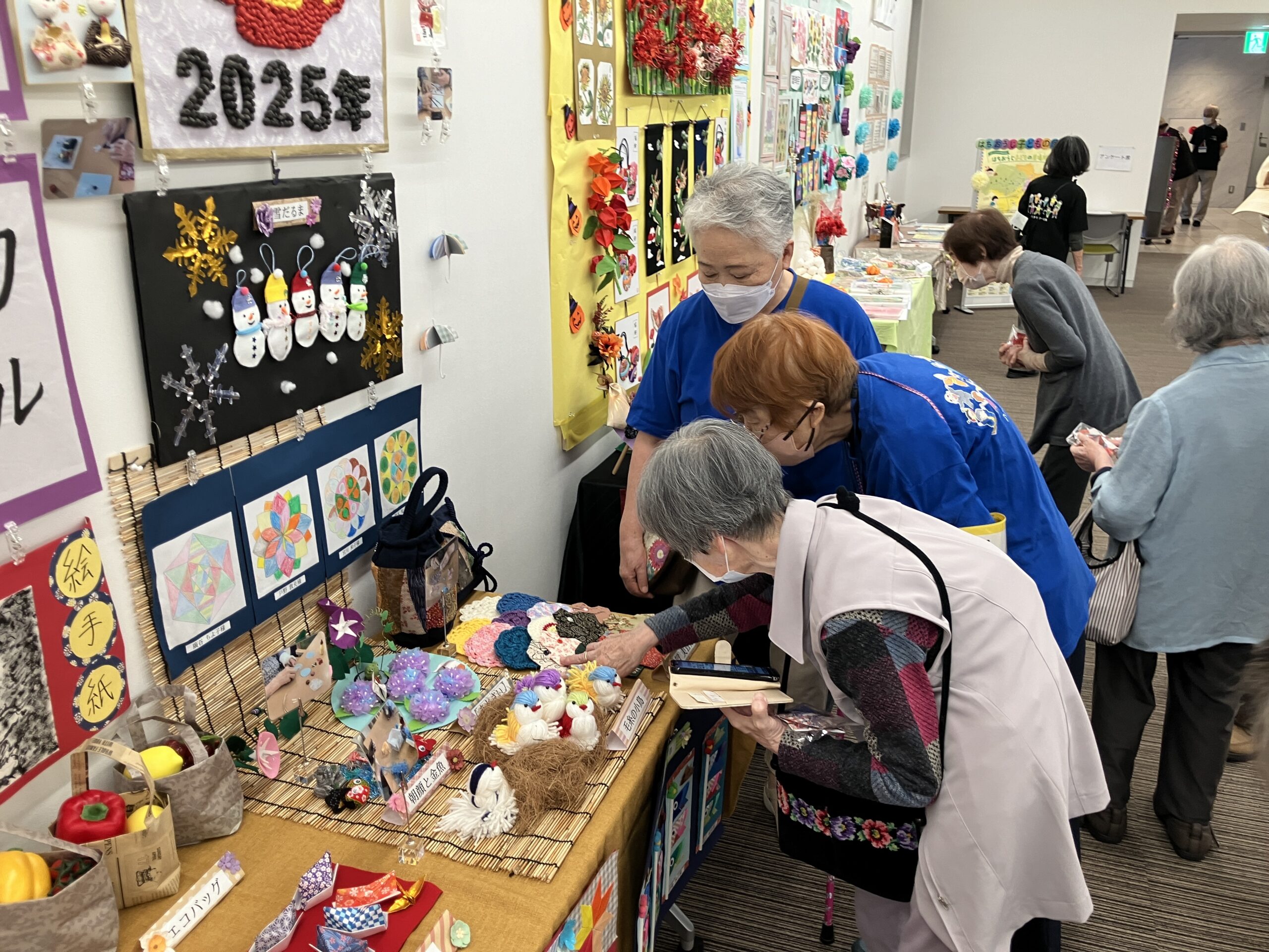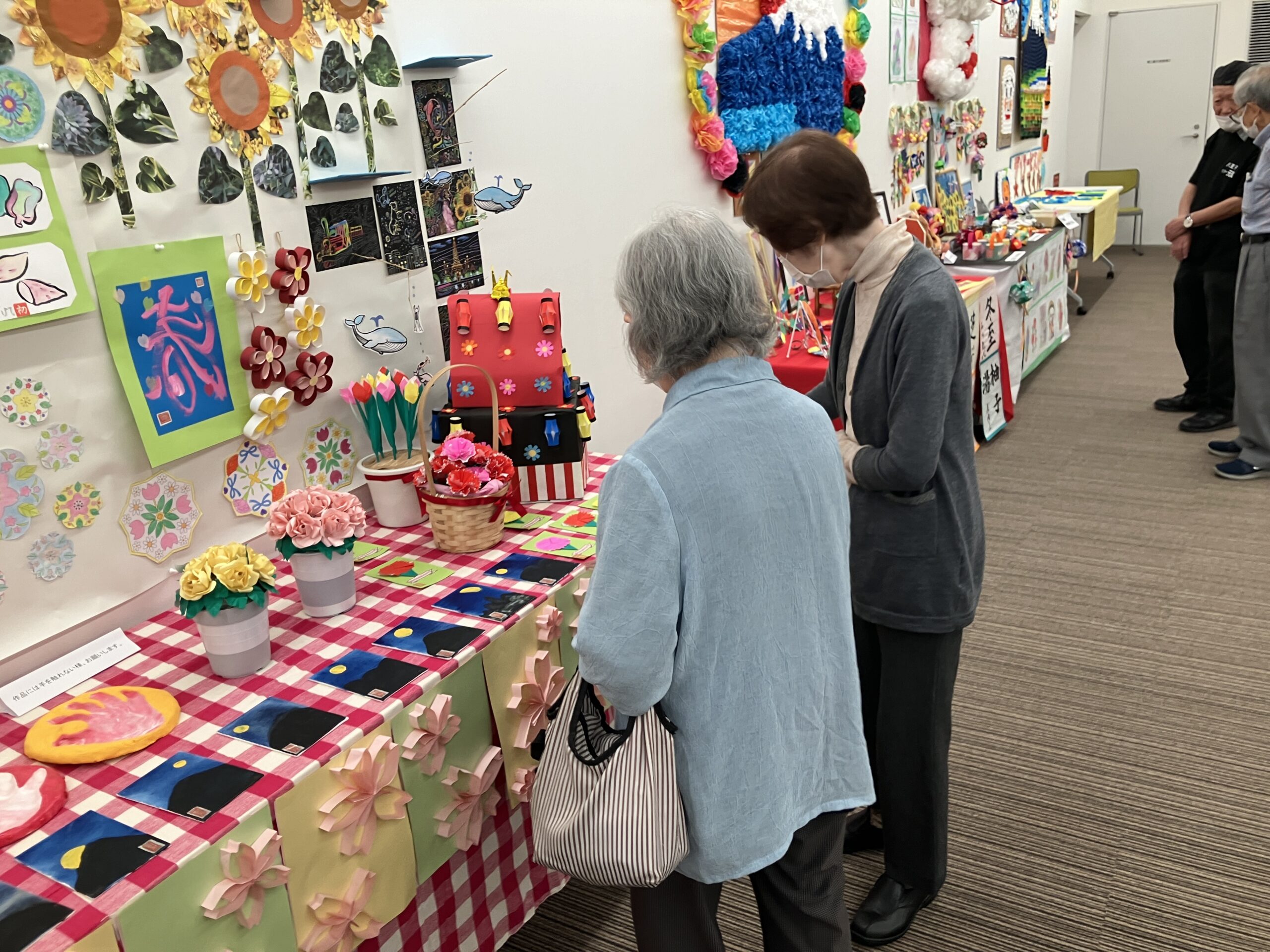 会場には沢山の施設から出展された絵画や手芸、さまざまな作品が並び皆様「すごいね~!」「綺麗だね!」と熱心にご覧になっておりました。