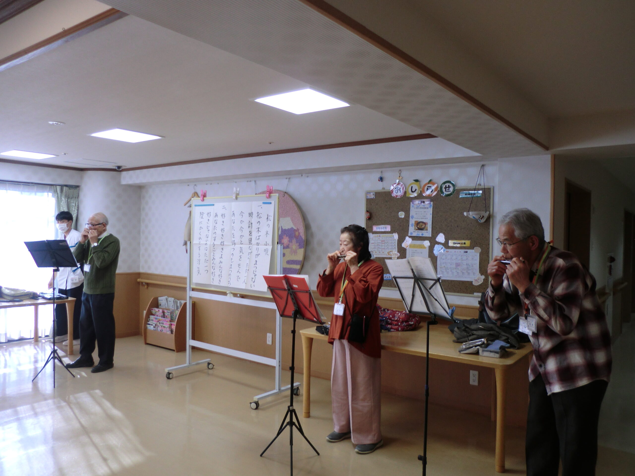 2階ホールにてハーモニカの演奏を行いました(^^)/