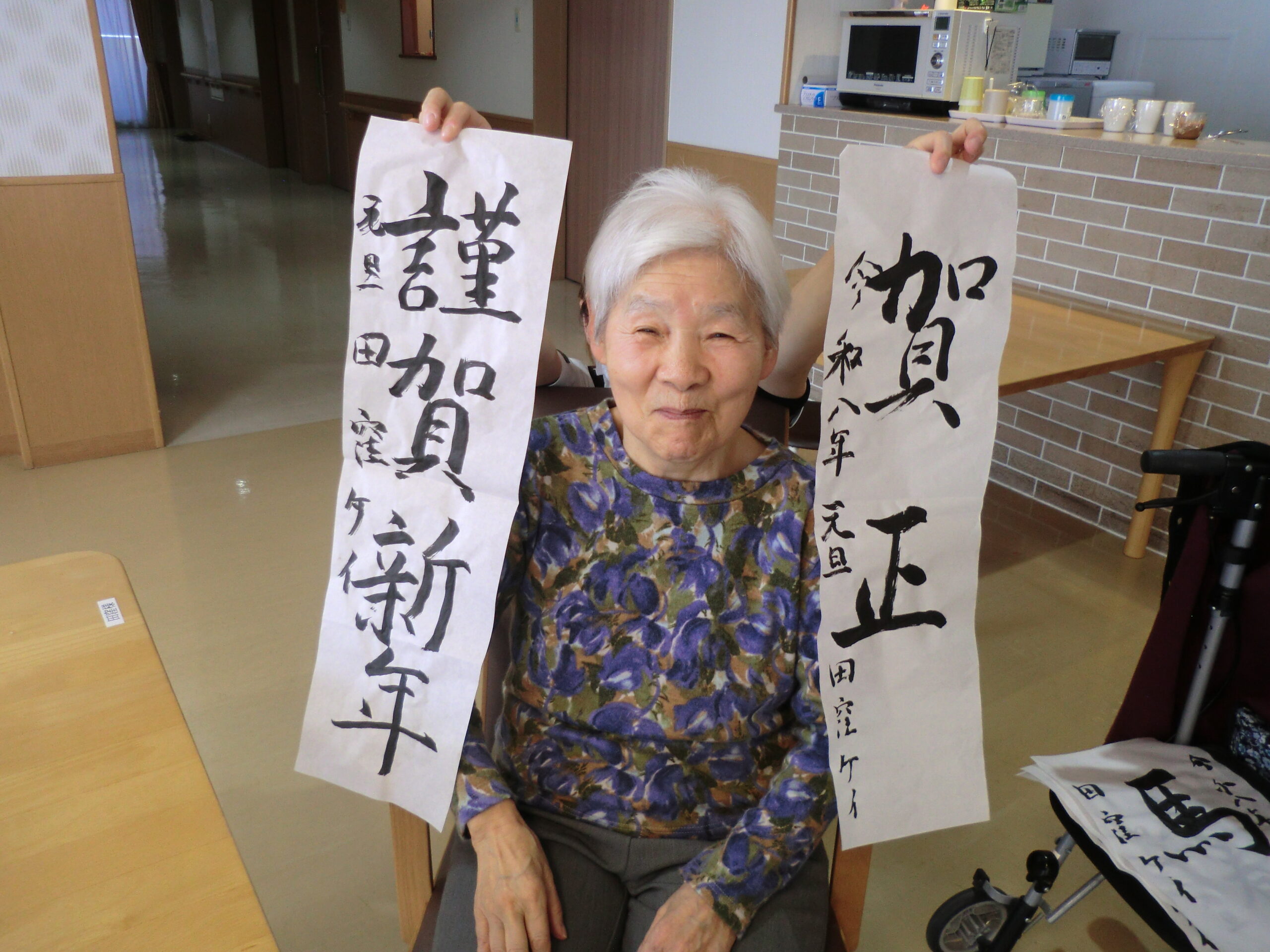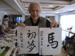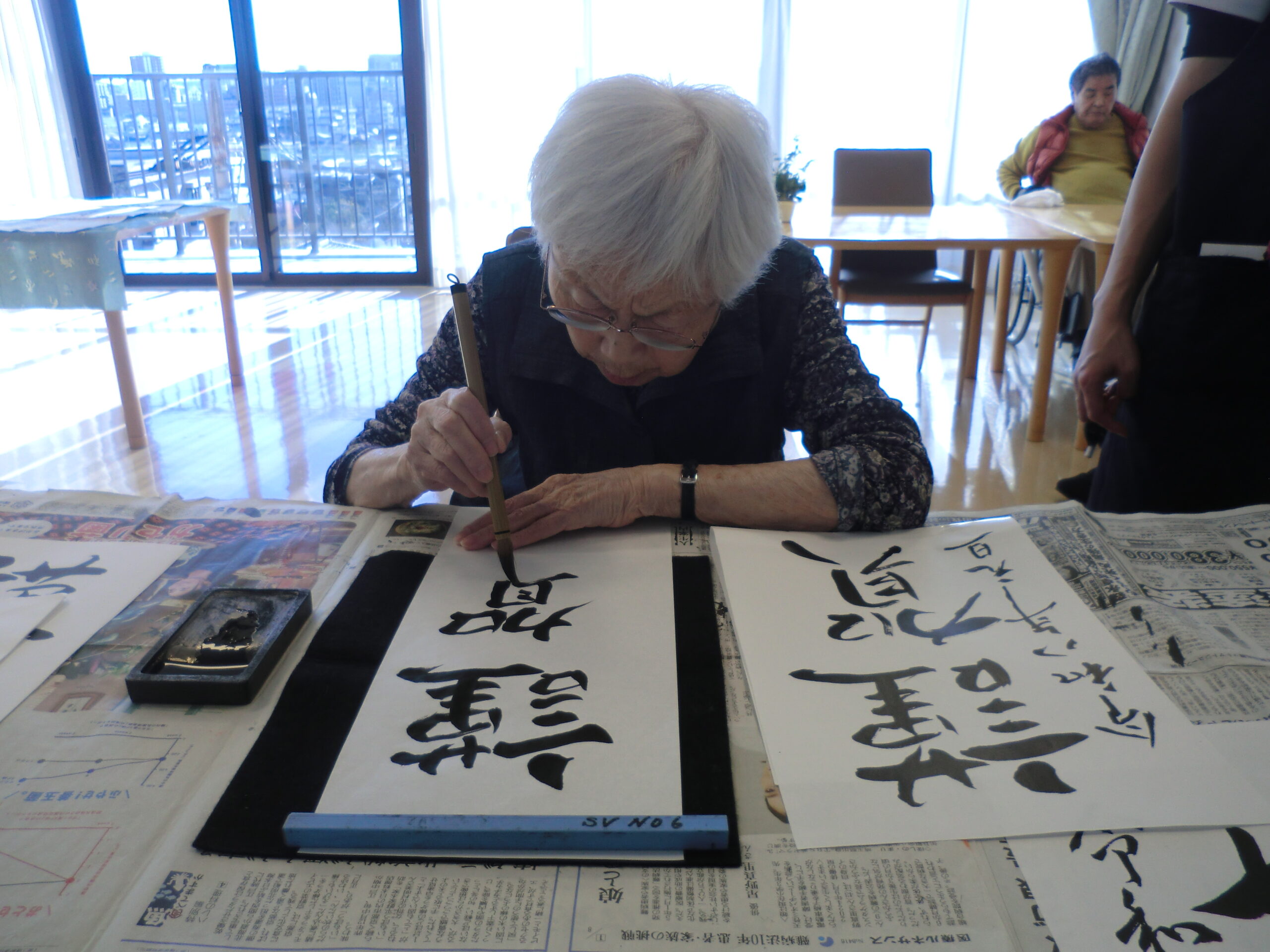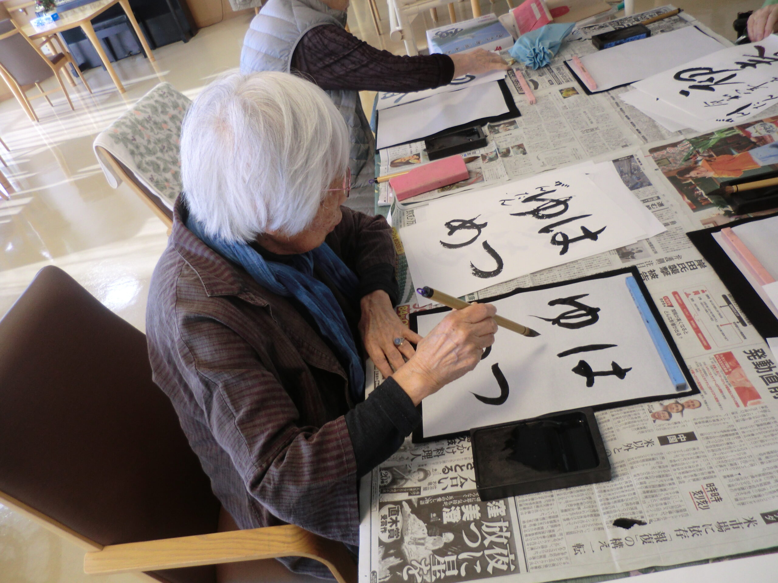 4階ホールにて書初めを行いました!八巻先生にお越しいただいております。