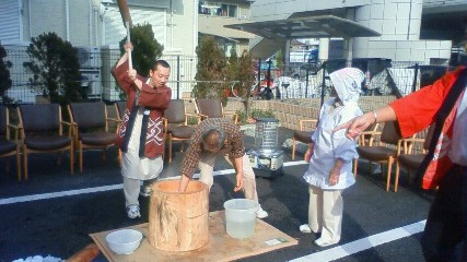 2009.12.30 シルバービレッジ日野東館 本日は餅つき大会でした! お日様は出ていましたが師走らしいキリッとした寒さの中、掛け声に合せてペッタンペッタン・・・ 納豆餅、辛味餅、あんこ、きなこ・・・ いくらでも食べられますね!!