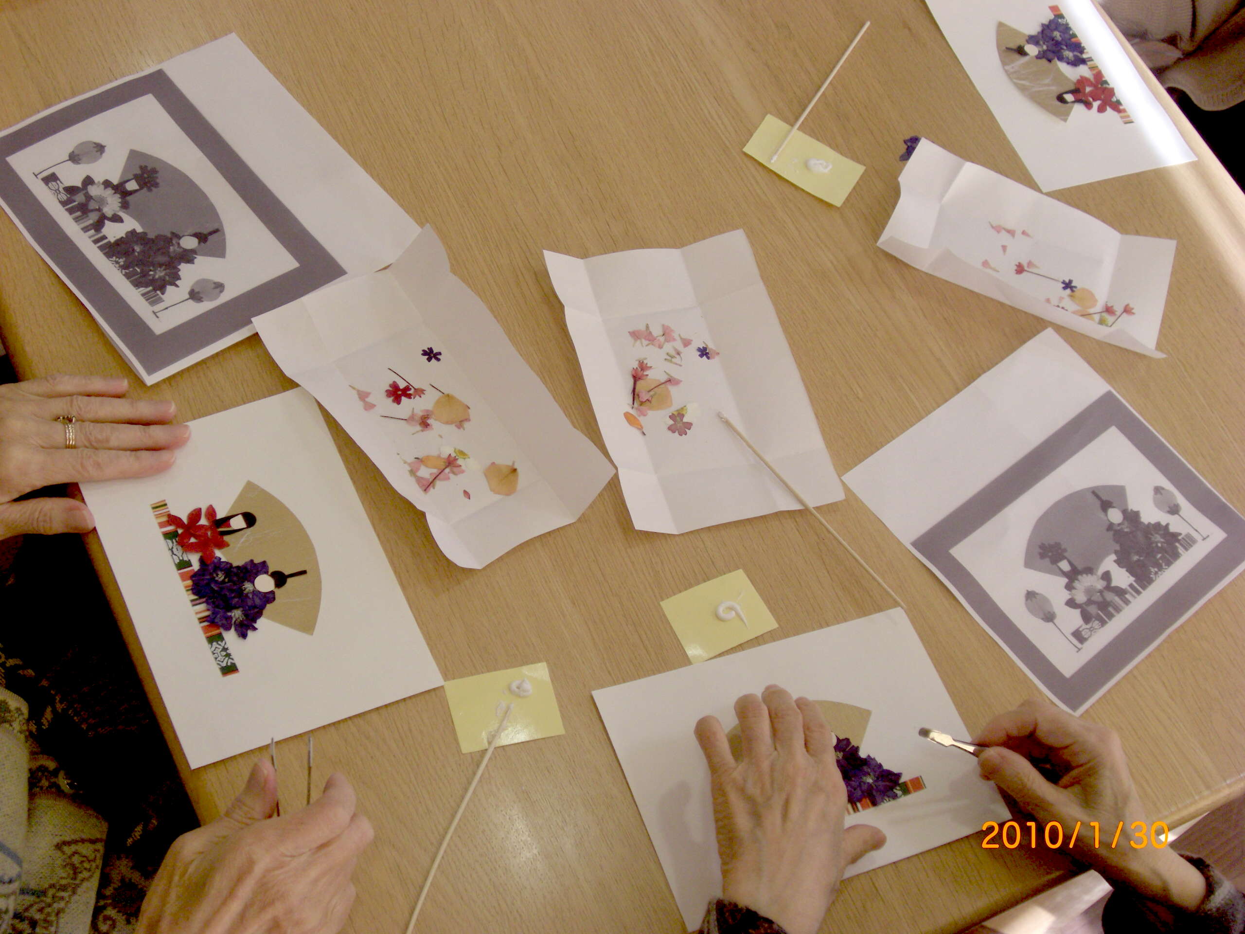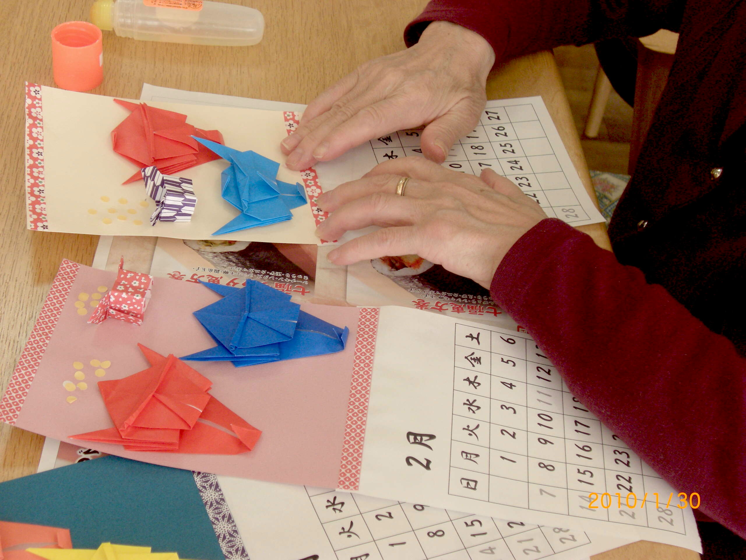 ご入居の皆様が折り紙を折り、貼るまで行いました。お話しをされながら