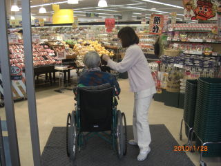 2010.02.05 シルバービレッジ日野東館 買い物もまた楽し! 今月の料理教室は「鶏肉とうどんの味噌煮込み」を作りました。 昔とった杵柄?! 皆様の包丁さばきはお見事です!(^=^) 近くのスーパー「いなげや」さんへのお買い物にいきました。 さぁ何を買いましょうか? Writer:鈴木 祐佳