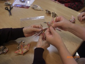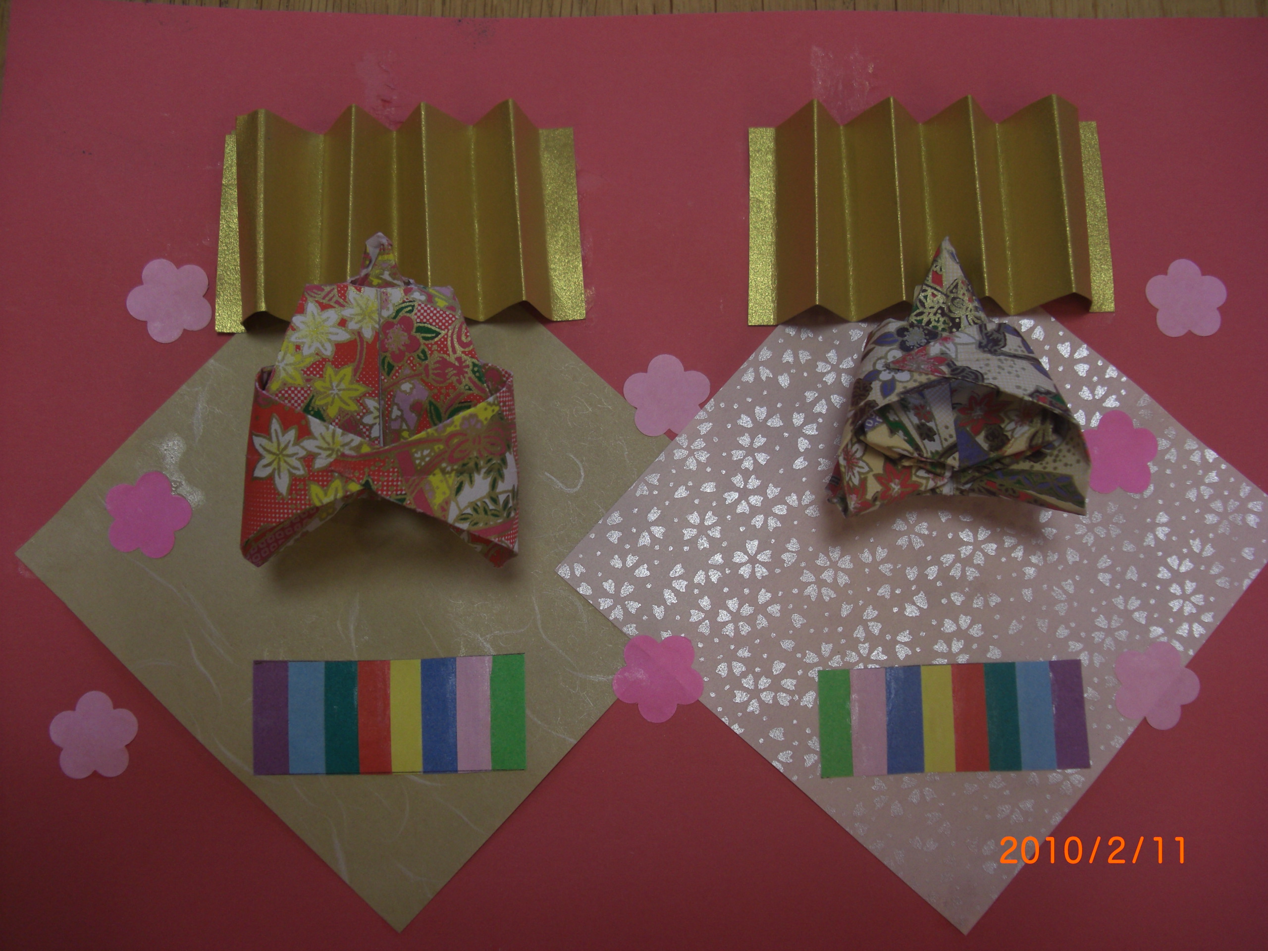 3月のひな祭りに向けて、折り紙で雛人形作り。