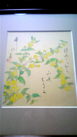 黄色い花に達筆な字がさらさらっと書いてあります。