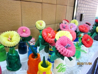 2010.11.05 シルバービレッジ西東京 芸術の秋です! シルバービレッジ西東京の秋の展覧会が始まりました。 ご入居者の皆様と創作レクの時間に作りました。 今年は、「花」をテーマに作りました。 何で作ってあるお花か、わかりますか? 果物を包んである、緩衝材です。 14日まで行っています、皆様ぜひ足をお運び下さいませ! Writer:渡邊 知子