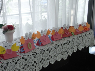 2011.08.19 シルバービレッジ八王子 左からカニ彦、カニ夫、カニ子、カニ司・・・・・・・ 先日、工作レクリェーションを行いました。 紅白の紙を使用して、カニを作りました。 みなさん、思いおもいに作られ 個性的なカニが沢山出来上がりましたよ!!! 完成作品はホールのテレビ横に並んでいますので お立ち寄りの際には是非ご覧下さい!! Writer:鈴木 恵介