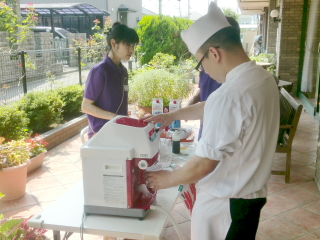 2011.08.13 シルバービレッジ日野 立秋過ぎましたが・・・かき氷!! 立秋すぎましたが 今日もとても暑いですね。 こんな厚い日やはり かき氷!!ですね。 本日のおやつはかき氷でした。 みんなで食べて暑さをしばし忘れた楽しいひと時でした。 Writer:風間 香織