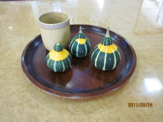 2011.08.25 シルバービレッジ西東京 食べられません! 皆さん見たことありますか? 観賞用のミニかぼちゃです。 職員の家の庭から収穫されました。 シルバービレッジ西東京の 一階カウンターに飾ってあります。 とてもかわいいですよ! Writer:宍戸 房子