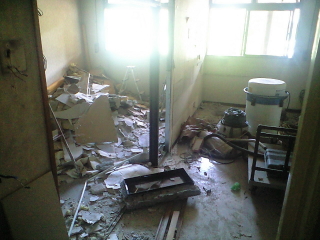 2011.09.27 シルバービレッジ西東京 「シルバービレッジ西東京」リニューアル工事速報 9月21日よりリニューアルの為の工事が始まりました。 ドンガンドンガンと解体の騒音 入居者の皆様方には、迷惑をお掛けしております。 申し訳ありません。 12月上旬には、完成し 新しい食堂でクリスマス会や新年を迎える事が出来るよう 急ピッチで作業が行われています。 写真は、元ナースステーション・・・ ・・・解体中 Writer:田中 昇