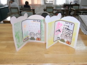 2011.09.30 シルバービレッジ八王子 ささやかながら・・・ 敬老の日に職員が手作りの メッセージカードを作成してくれました。 利用者の皆様に益々お元気でお過ごし下さい との思いを込めて、ささやかではありますが 作らせて頂きました。 Writer:鈴木 恵介