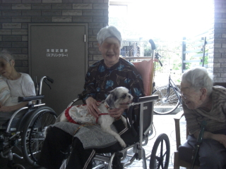 2011.09.10 シルバービレッジ日野東館 アニマルセラピー 今日の午後は・・ シルバービレッジ日野東館初の レクリエーションでした。 ワンちゃんと触れあったりお散歩したりしました。 今回は2頭の犬達が入居者様のお膝の上に お邪魔しましたよ。 なかなか犬と触れ合う機会がなかった入居者様達は 皆様とてもいい笑顔で楽しまれていました。 Writer:鈴木 祐佳