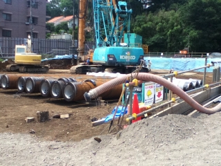 基礎となる杭打ちが始まりました。その長さはなんと14m!