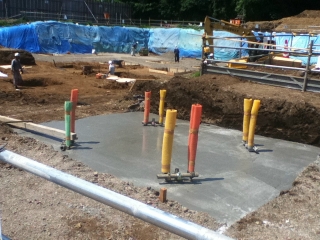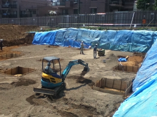 捨てコンの打設終了後、地下の基礎工事・鉄筋工事を