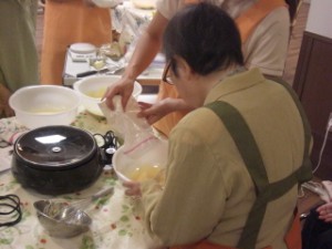 2011.10.13 シルバービレッジ日野東館 オレンジケーキ 今日はオレンジケーキ作りを行いました。 フライパンで出来るケーキ作りが今はあるんですよ。 ビックリです! ホットプレートで応用出来そうだったので 挑戦してみました。 混ぜ合わせた粉をホットプレートに注ぎ込んで グツグツ・・・ 焼きあがるまで30分以上かかりました 、膨らんでいく姿を見ている のも面白かったですよ。 完成したケーキは入居者様のおやつに。 甘さもちょうど良く美味しく頂きました。 Writer:鈴木 祐佳