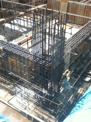 各階の鉄筋を組み、コンクリートを流すための型枠を作り