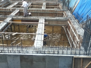 鉄筋・型枠ができてゆきます。コンクリートを流し、完成です。