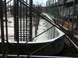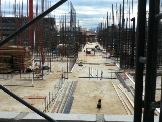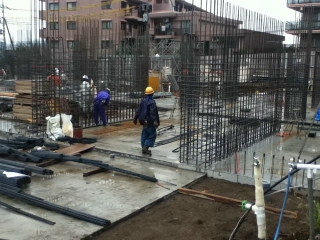 鉄筋工事が進み、南北に通る中廊下が見えてきました。