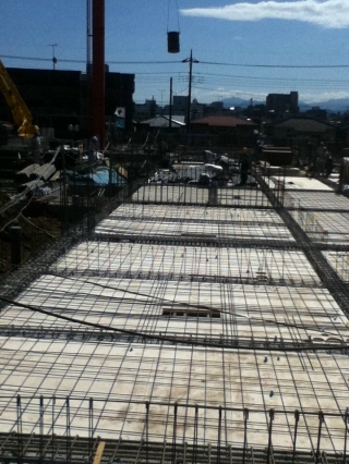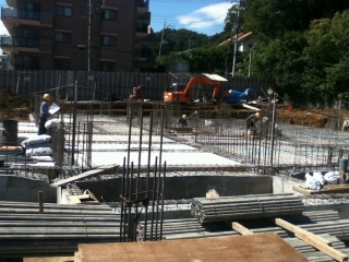 床を支える鉄筋が配置され、1階床の完成が間近に迫りました。