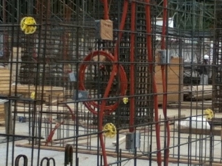 地上階の鉄筋工事には変わった物がぶら下がっています。