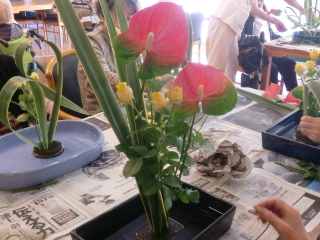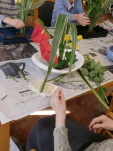 先生がお手本を作り、今度はご入居様が実際に作業スタート!!