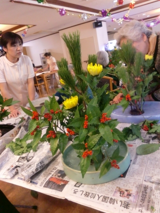 (完成した生け花は、ご入居者様のお部屋に飾られるんですよ(^_-)-☆)
