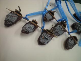 2012.02.15 シルバービレッジ西東京 素朴に… シルバービレッジ西東京の東側の駐車場に出来ていた「渋柿」を 昨年、看護師の福永さんが自宅で干柿にしてくれました。 きれいに粉を吹いた見事な干柿でした。 また、一緒に持って来てくださったのは 珍しい「かぼちゃ」 このところ、私はかぼちゃに縁があるようで・・・ この福永さんのかぼちゃ「ひょうたんカボチャ」をはじめ ご家族の方が持って来てくださった「バターナッツ」 それと、私事ですが実家でもらった時期が外れましたが「ドテカボチャ」 バターナッツの写真はございません。 種をもらって、育ててみよーっと・・ Writer:田中 昇