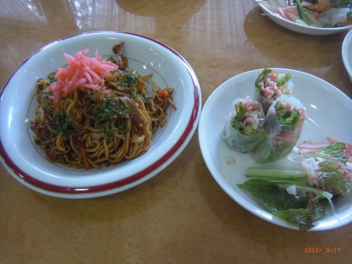 2012.09.19 シルバービレッジ八王子西 『✿料理教室✿』 本日は、料理教室です。 「やきそば、生春巻き」がメニューです。 女性の方々は、慣れた手つきでトントントン… ブランクがあっても慣れたもの。さすがです。 男性の方々は、「家じゃやらなかったなー」 と言いながら、母ちゃんが見たら笑うなと不器用ながらも一生懸命。 生春巻きはそんな男女の違いが一目瞭然。 女性・・・大きくも小さくもなく色合いも考慮し食べやすそう。 男性・・・弾けそうなくらいに具沢山。 食べるときには、みんな満足です。 Writer:田中 昇