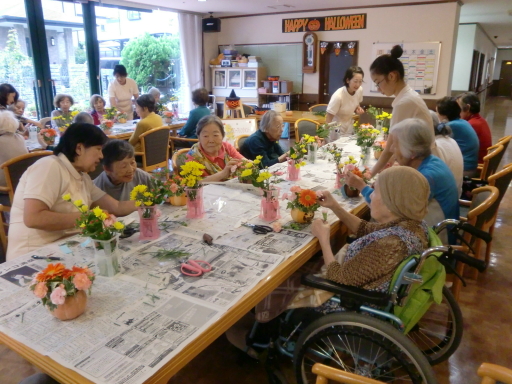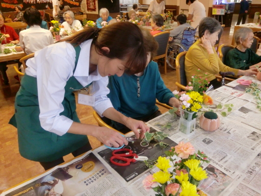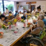 ご入居者様も真剣な眼差しでお花を生けていて、皆様の個性が沢山でた作品が出来上がっておりました。