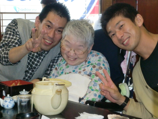 2012.10.18 シルバービレッジ日野 「秋の一泊旅行」 10月9・10日でシルバービレッジ日野・日野東館合同で、静岡県の焼津へ秋の一泊旅行に行って来ました。(^o^)丿 1日目の昼食にうなぎを食べ、ネオパーサー駿河湾沼津でコーヒータイム!そして焼津グランドホテルへ。 夕食は美味しいお食事と、宴会で大盛り上がりでした。 朝食は駿河湾の見渡せる場所で優雅にお食事。 お天気にも恵まれ、富士山を見ながら素敵な一泊旅行になりました。 Writer: 風間 香織