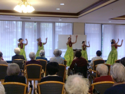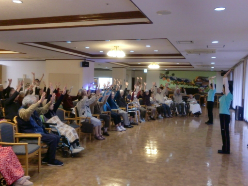 2012.11.29 シルバービレッジ日野 「キラキラ体操」 11月11日 午後のレクリエーションは「キラキラ体操」です。 Happy Brain Clubの皆様と、「キラキラ体操」を、更にスペシャルゲストとしてフラダンス「ピリアロハサークル」の方々がダンスを披露して下さいました。 後だしジャンケン!じゃんけんぽん! 先生はチョキを出しました! 皆様は何を出しましたか~!? たくさんの方が参加して下さいました! 毎月行われるとの事ですので、また宜しくお願いします! Writer: 渡辺 豊