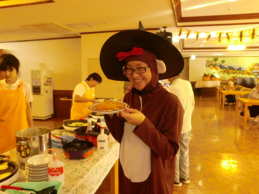 2012.11.13 シルバービレッジ日野 「10月31日 ハロウィンパーティー」 職員が仮装し、入居者様は驚いてくれましたでしょうか? TRICK TREAT!?(お菓子をくれないといたずらするぞ!) なんて言えませんが・・・。 おやつはパンケーキを皆様で作りました。 デコレートも自由にお任せです。 生クリーム使い放題です! 皆様で美味しく頂きました。 Writer: 渡辺 豊