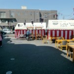 予定通り、外でテントを貼り屋台を作りましたよ。