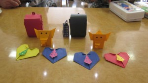 2013.03.12 シルバービレッジ八王子西 『折り紙教室☆』 3月8日午後より ボランティアの先生による折り紙教室を行いました。今日は、ぞう ネクタイをしたシャツ 又 新学期が、近いので 上履き入れを作りました。 その後 お茶を飲みながら自分が作った作品の話で 盛り上がりました。 Writer: 宍戸房子